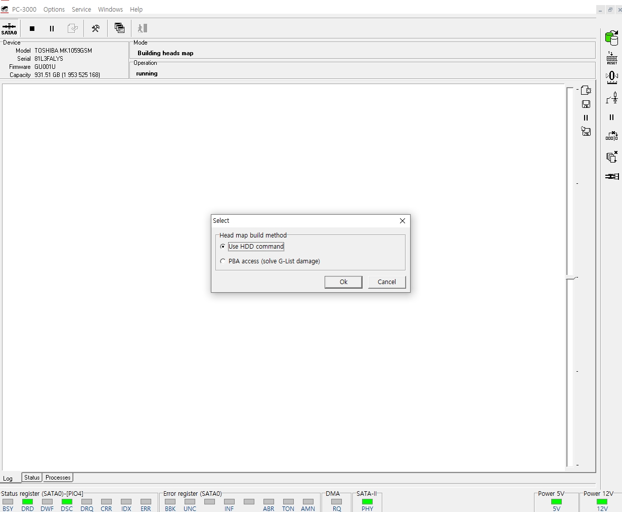접수된 외장하드로 부터 하드디스크를 분리하여 복구장비인 PC-3000E에 연결하여 전원공급