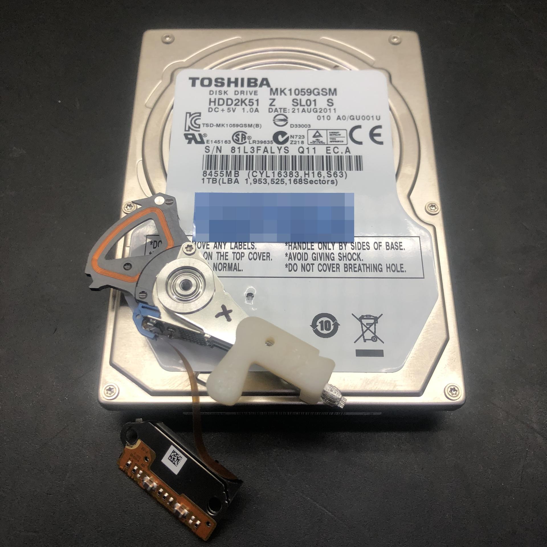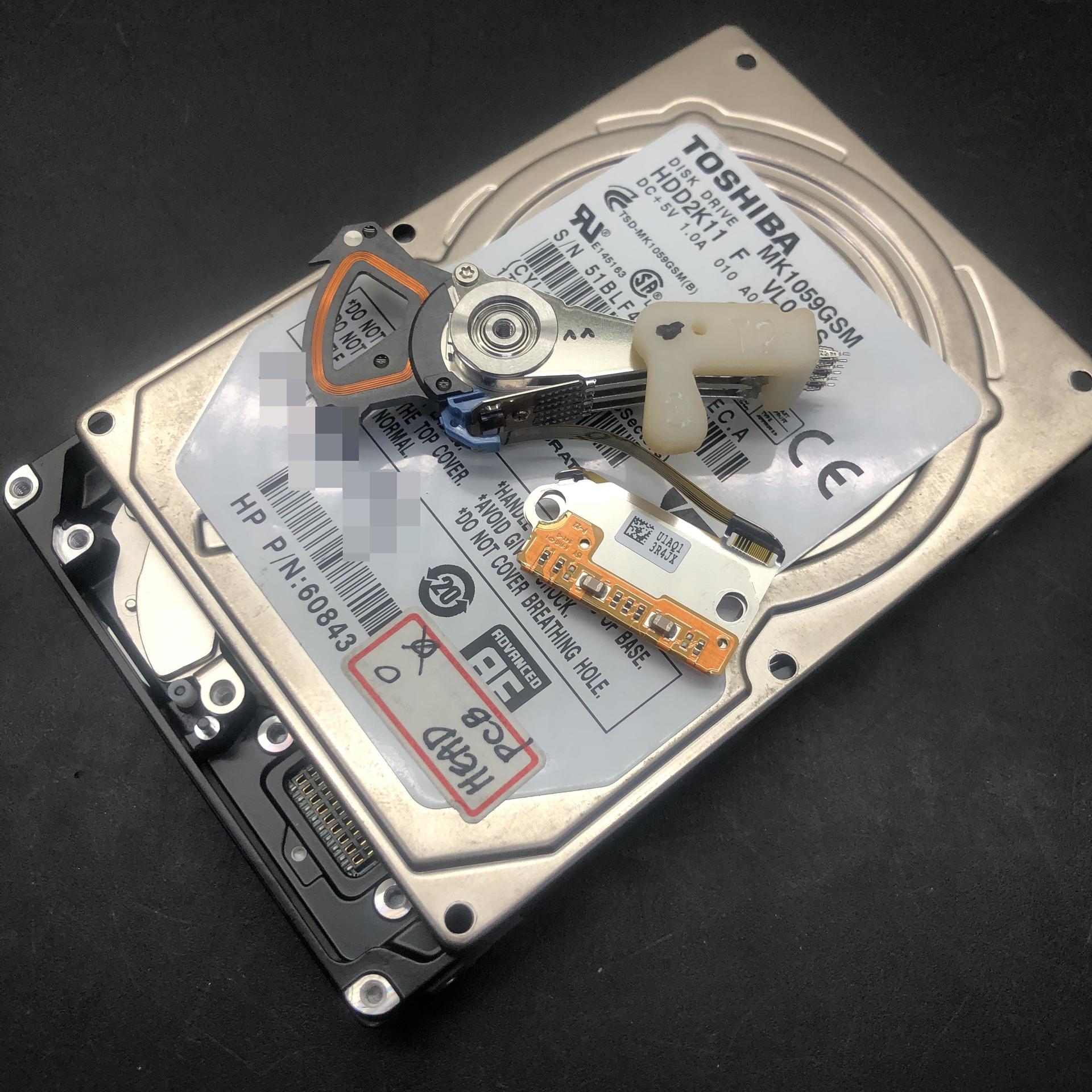 1차 덤프작업을 마무리 한 후 의뢰된 외장하드의 손상된 헤드를 추출하고 작업중에 확보한 동종모델에서 정상헤드를 추출하여 헤드스왑