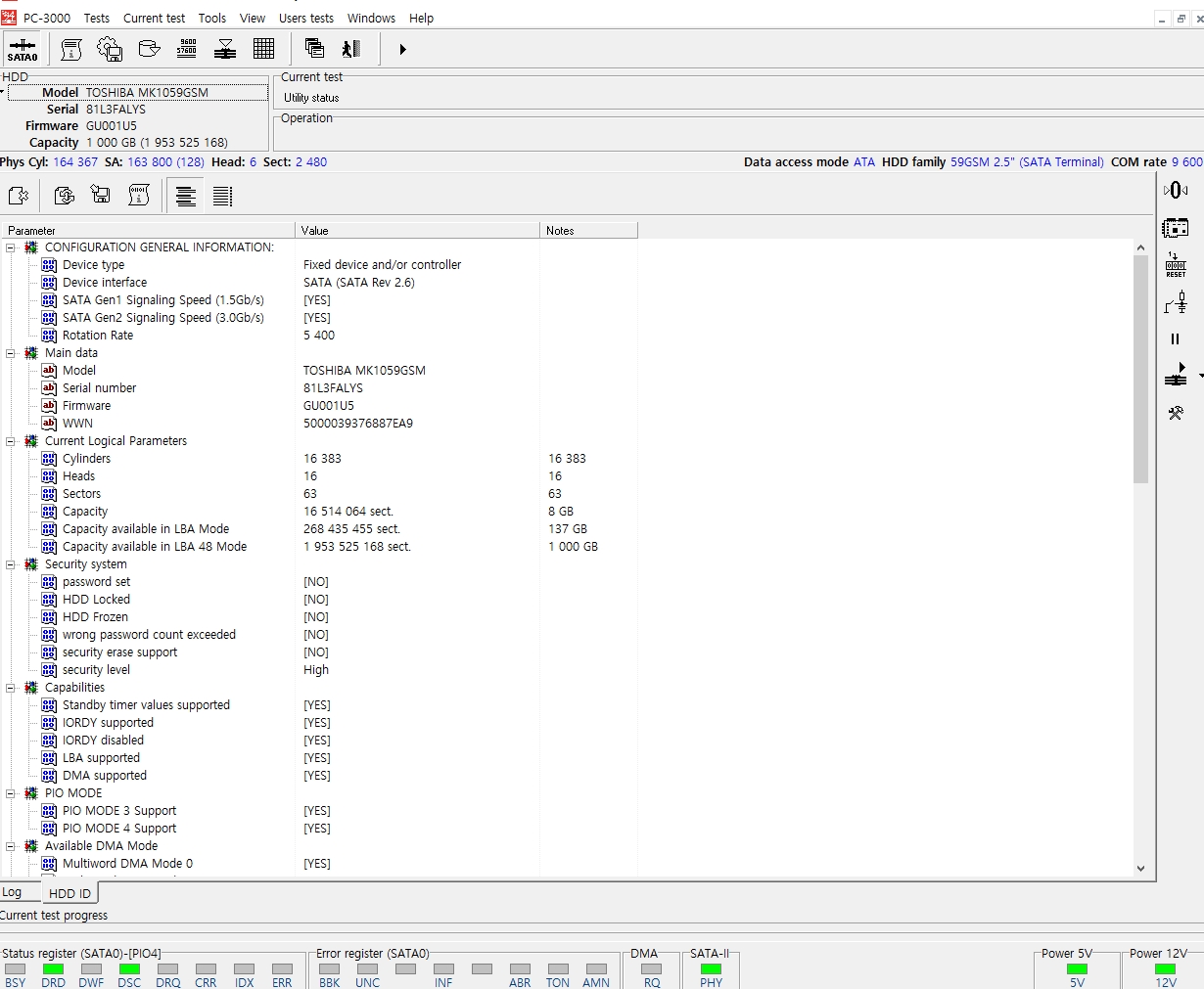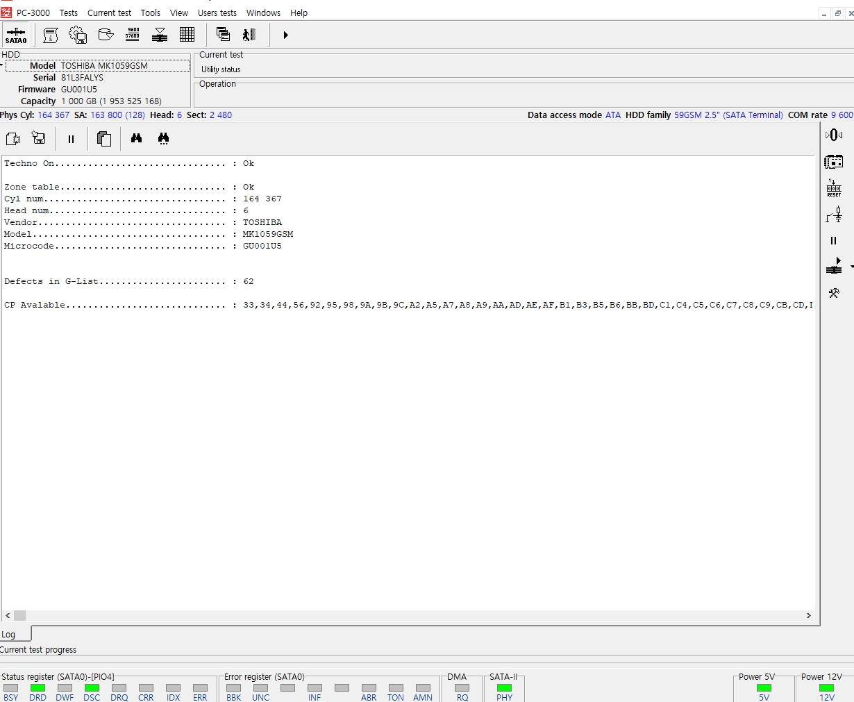 5.저장매체 검수 및 테스트 : 외장하드 내부 하드디스크를 S-ATA 직결로 연결하여 확인 결과 특정영역접근시 미세하게 딸깍거리는 소음 및 고주파발생