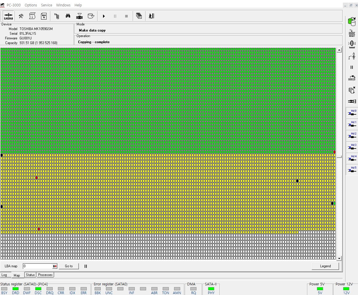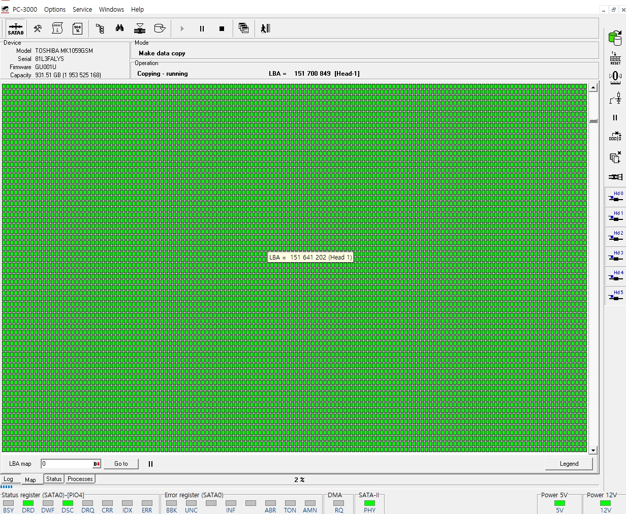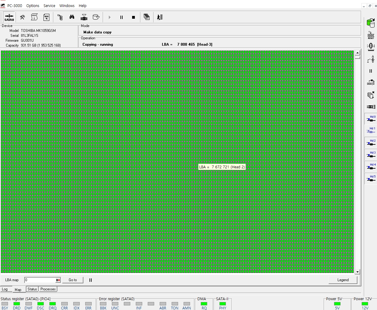 정상적인 헤드가 스왑되었기에 엑세스 하지 못하였던 1번,3번헤드 영역을 정상적으로 엑세스