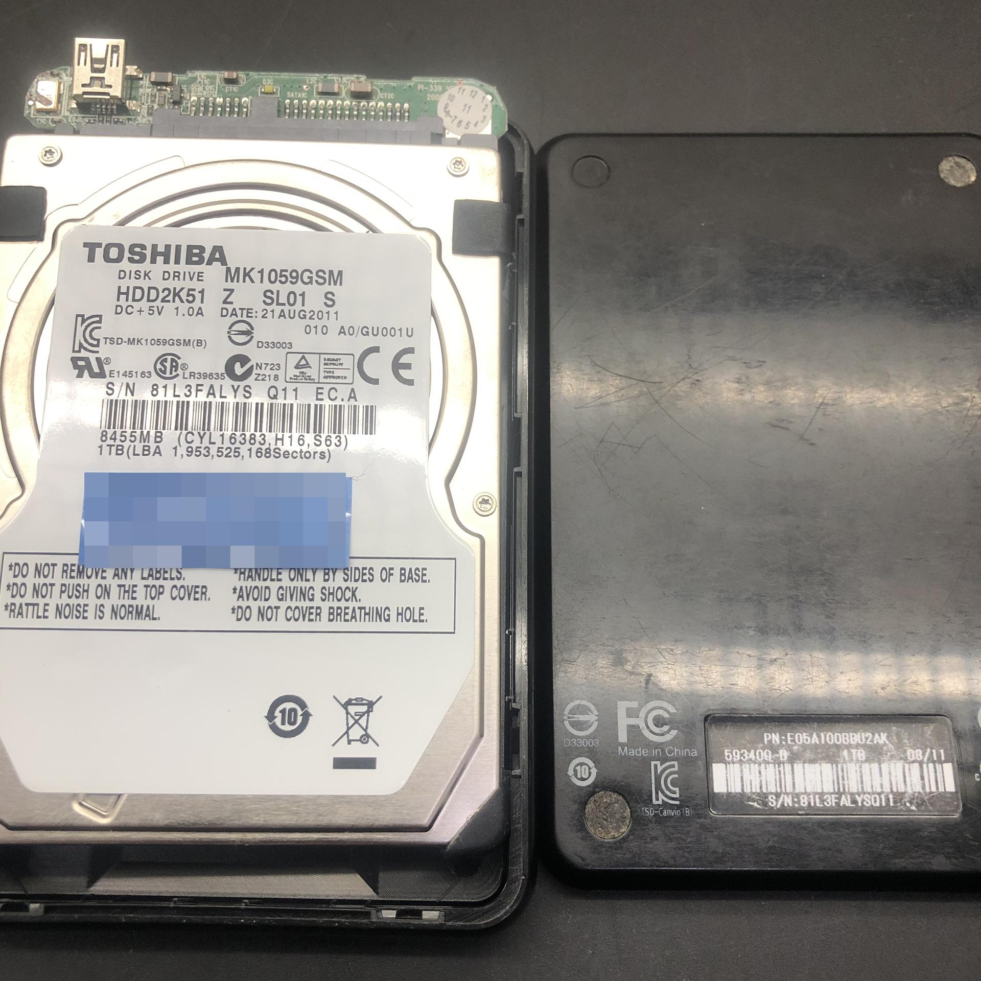 2.저장매체 : Toshiba External HDD 1TB / Toshiba MK1059GSM