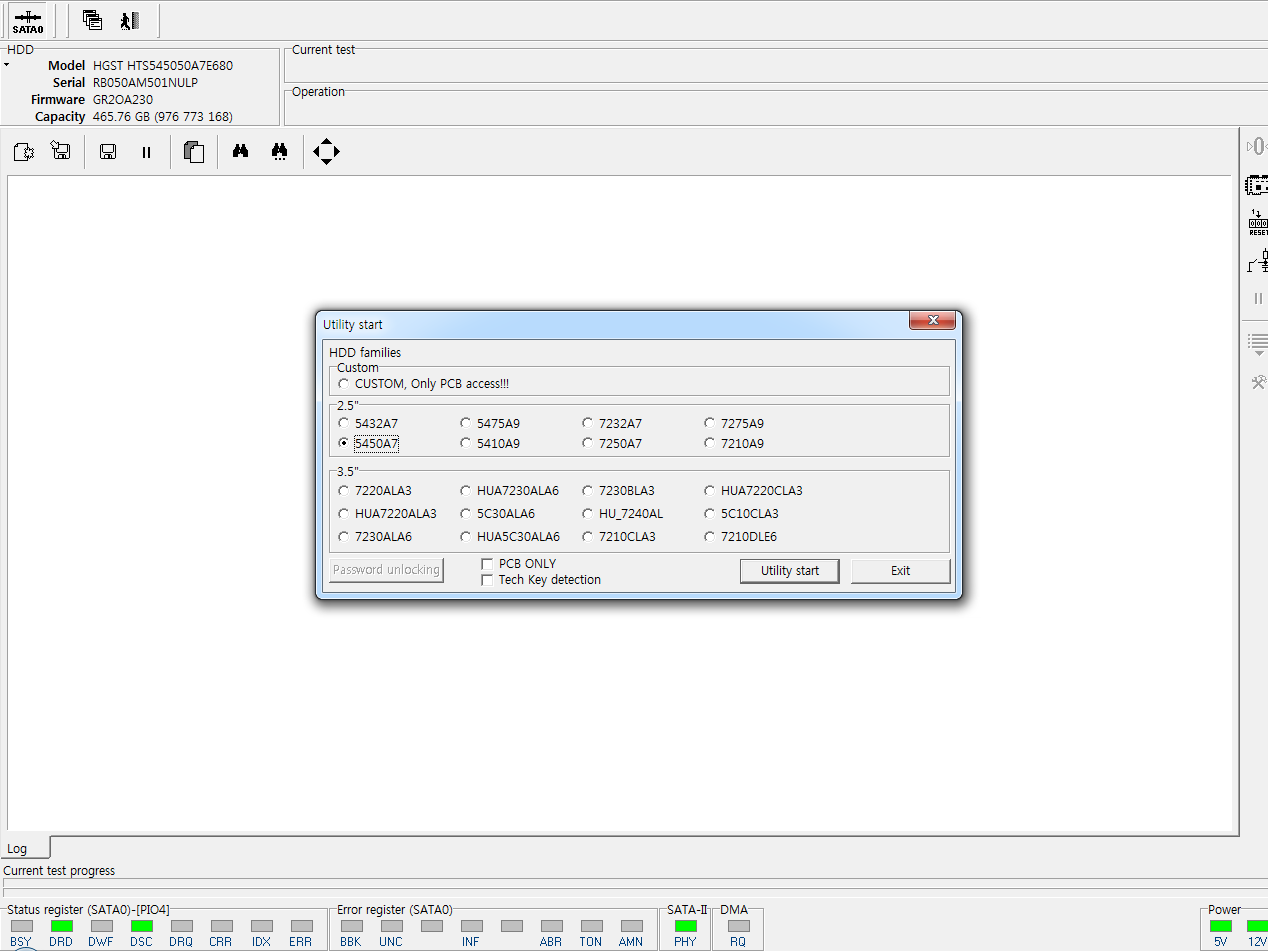 - 데이터 복구 장비에 연결 후 유틸리티 모드 진입