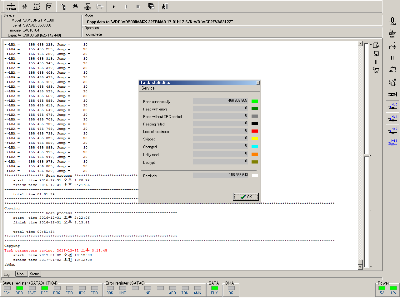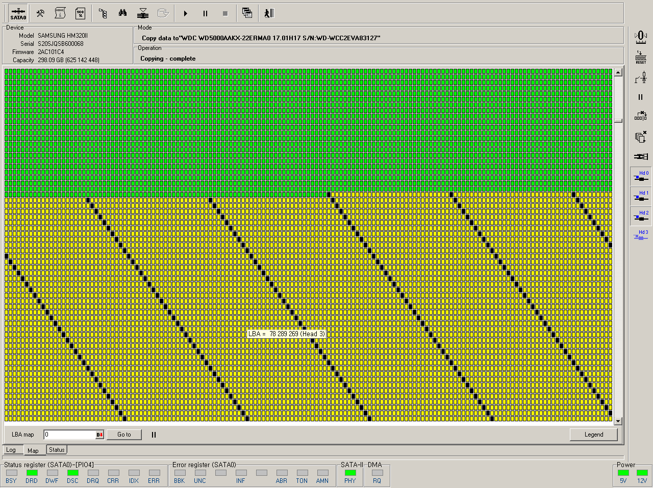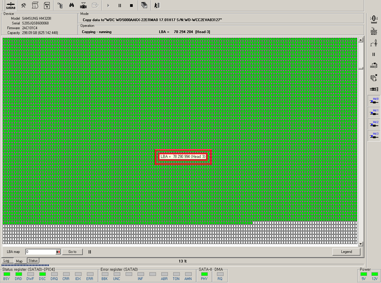 - 3번 Head 불량 확인/ 비활성화 후 데이터 값 복제