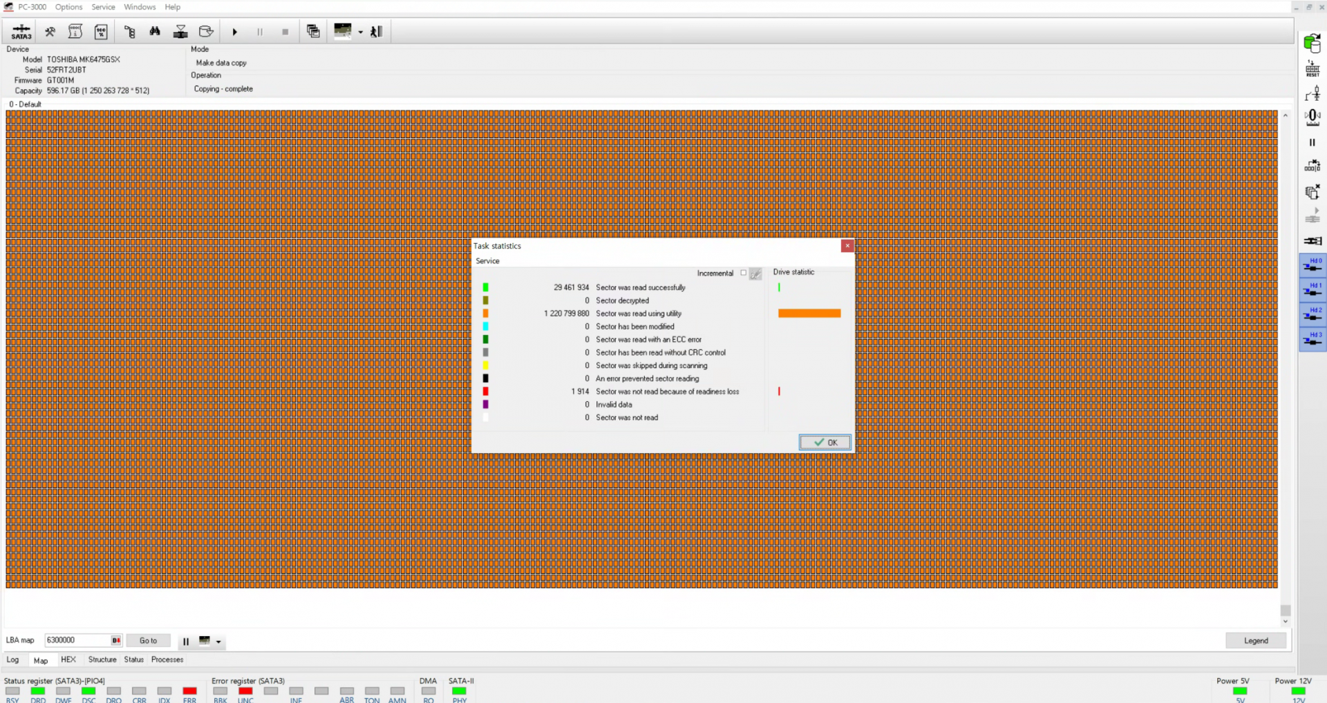 Bad Sector가 생긴영역이 단순MFT 및 시스템 파일영역이라 데이터값 손상없이 모든 데이터 복구완료