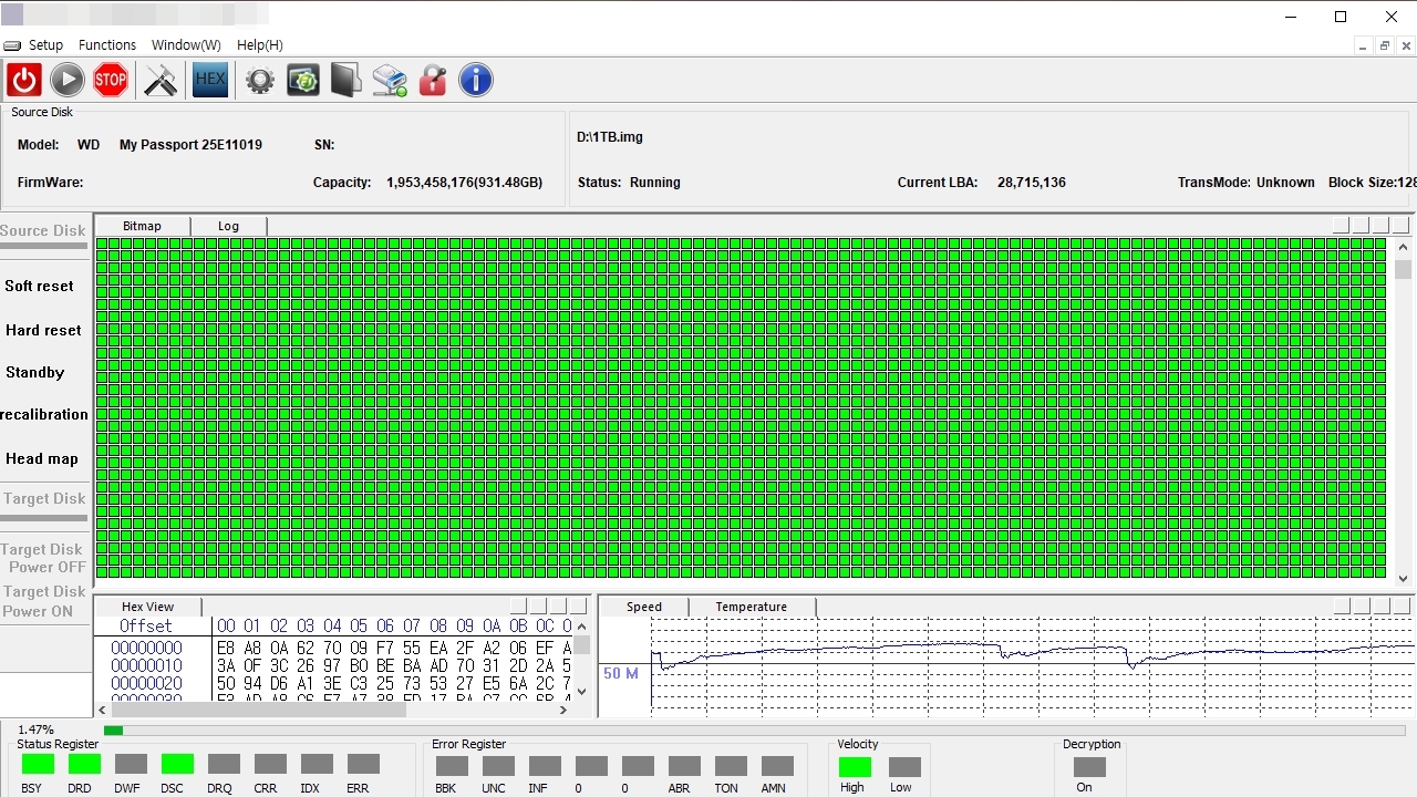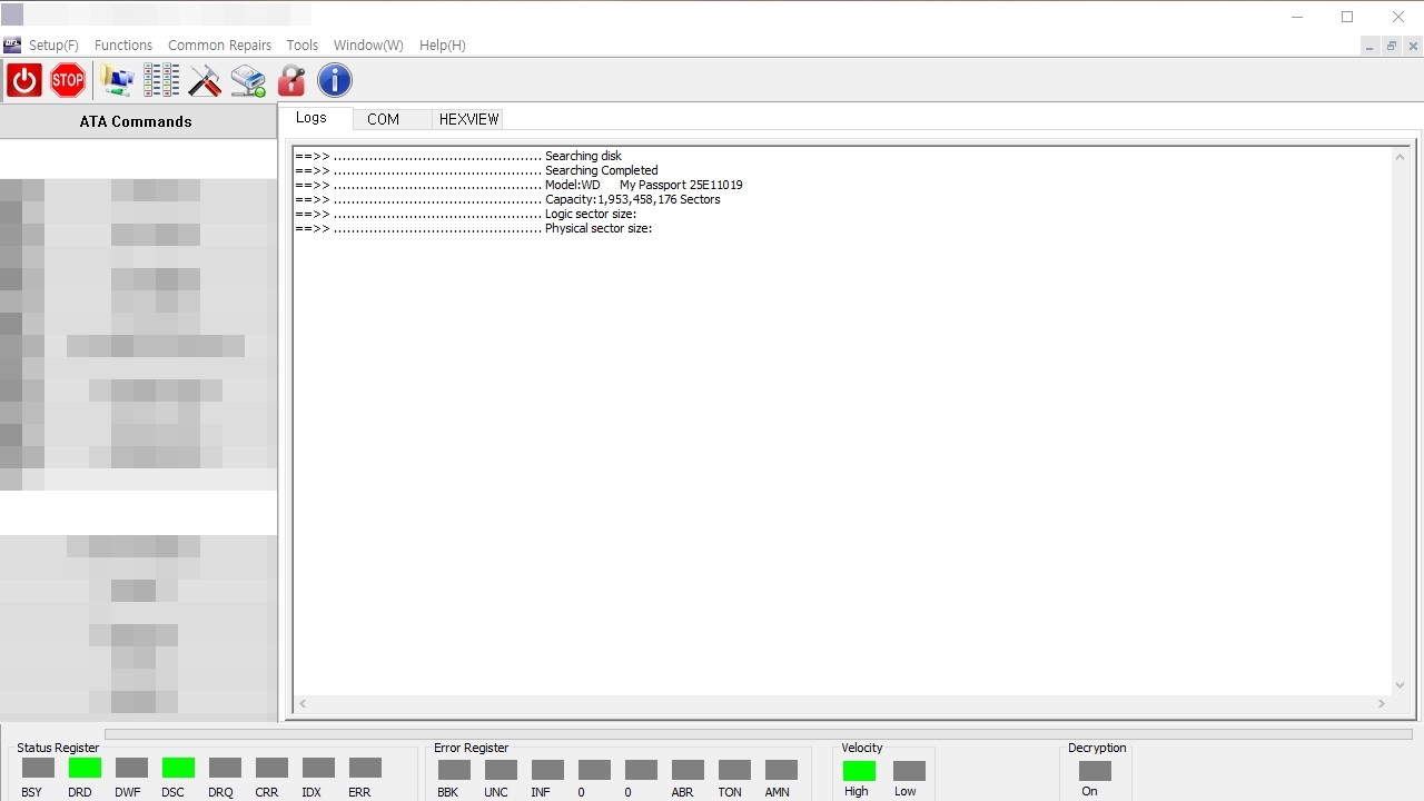브랜드 및 디스크의 기본 구성정보를 로드하였기 때문에 복구장비에서 제어가 가능한 상태로