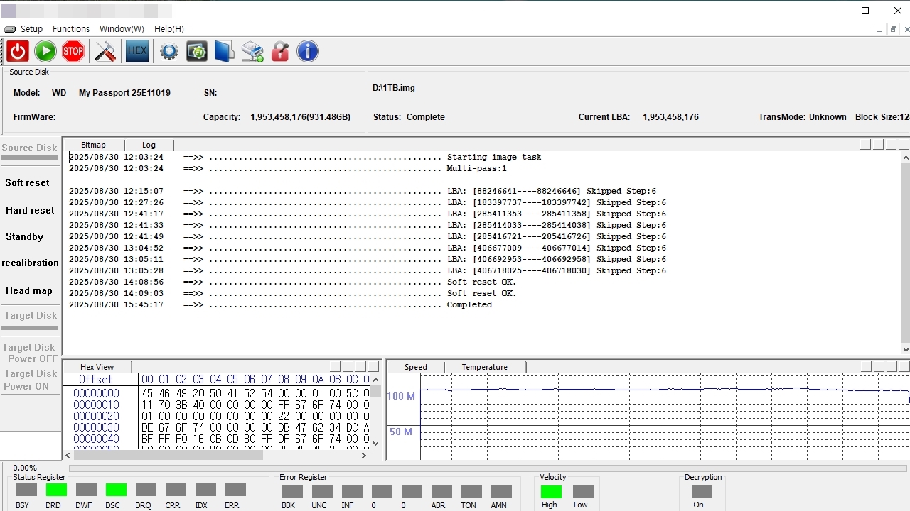 복제작업중 매우 경미한 배드섹터영역이 발견되었으나, 손상이 심각한 상태가 아니어서 원만한 복원작업이 이루어짐.