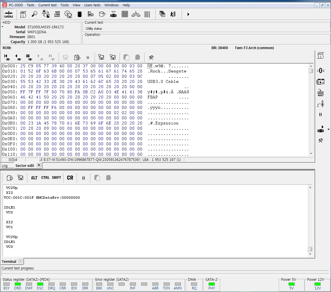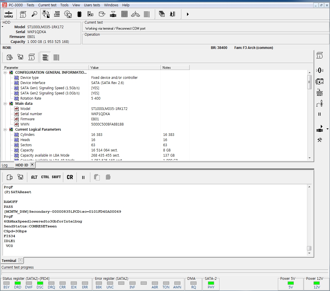 헤드가 손상된 것 같지 않습니다 디스크를 정상적으로 인식하는 상태이며, 드라이브아이디도 올바르게 출력합니다.