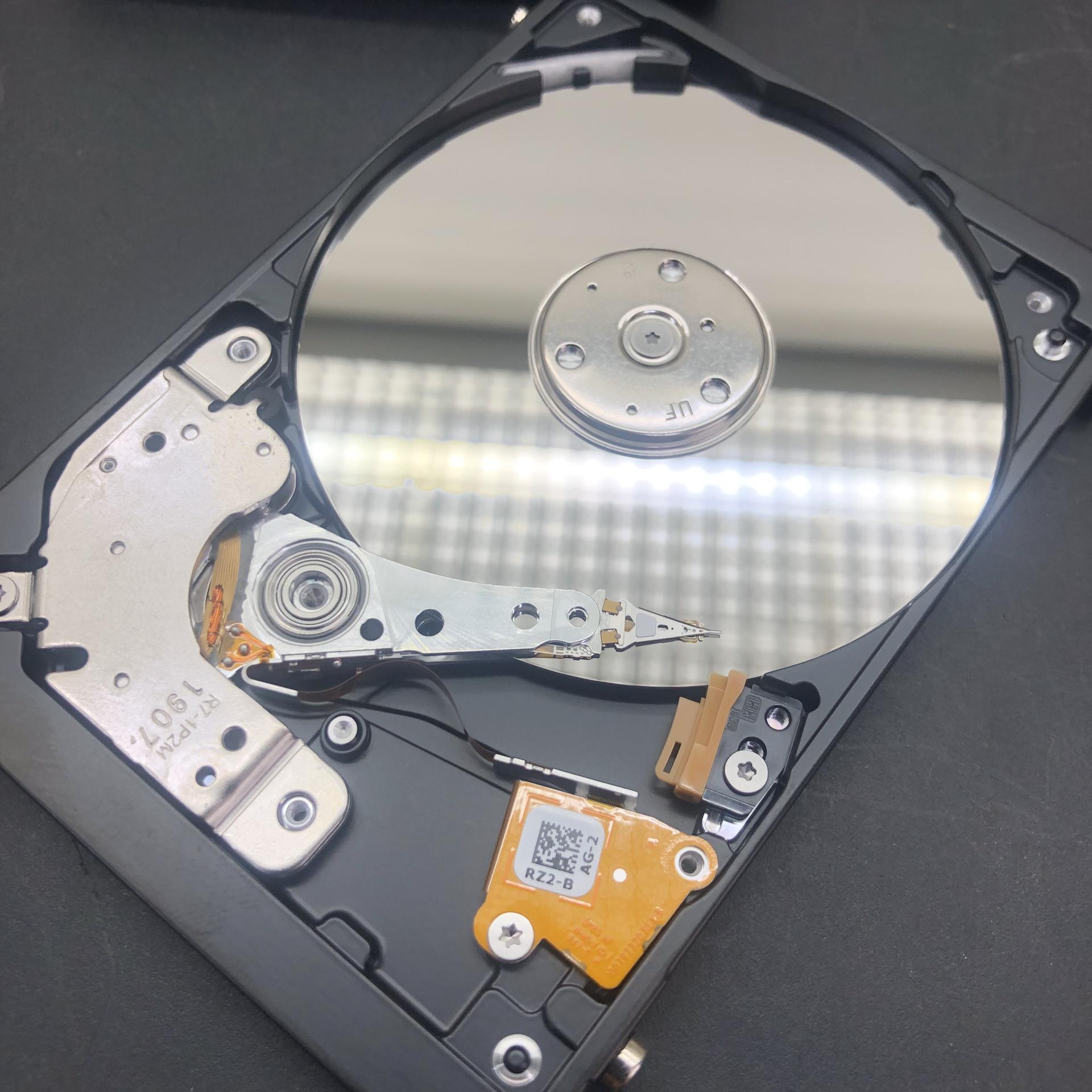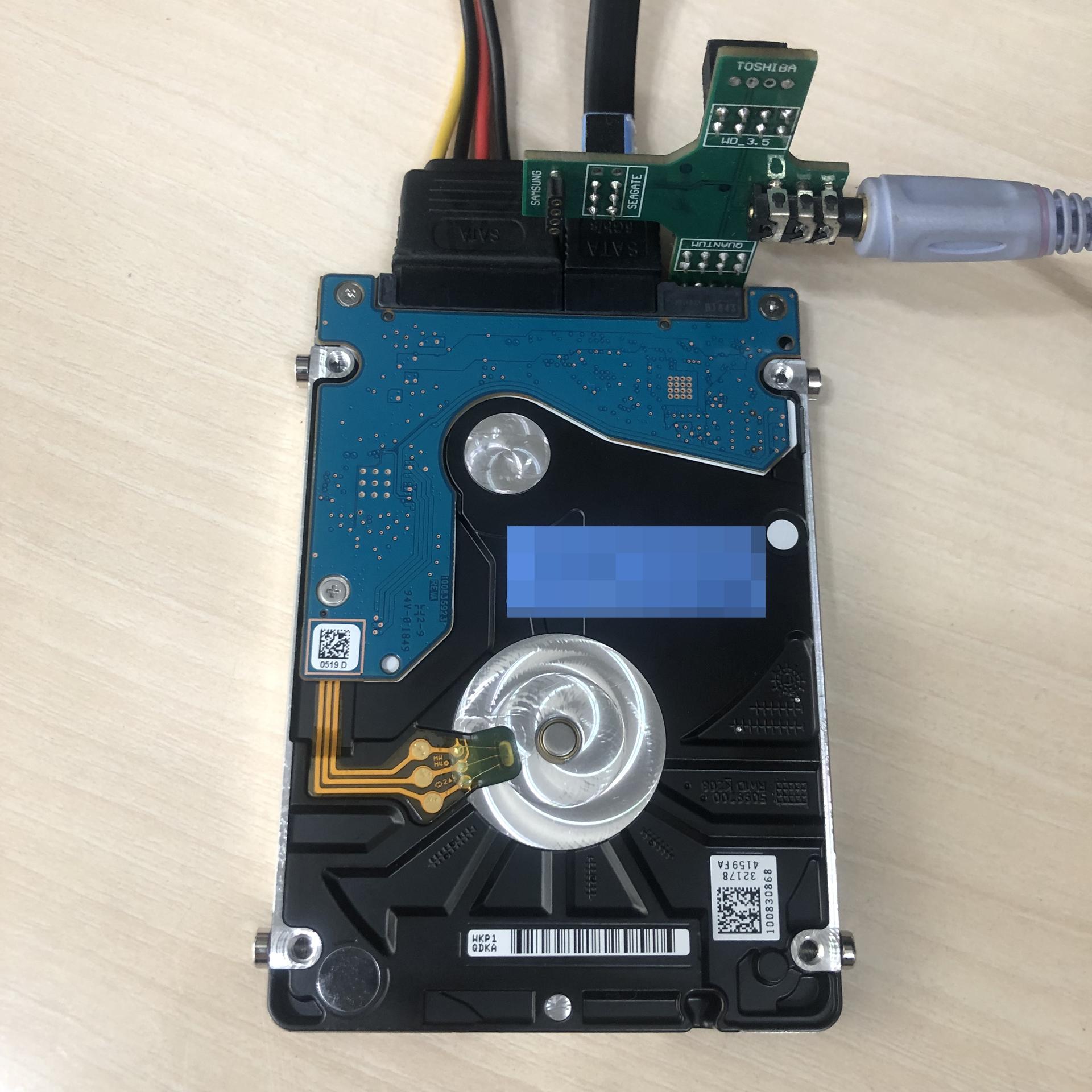 육안상으로 헤드의 꺾임은 없었으나 혹은 기타문제가 있는지 복구장비에 연결하여 전원을 공급하여 디스크 반응을 확인하였습니다.