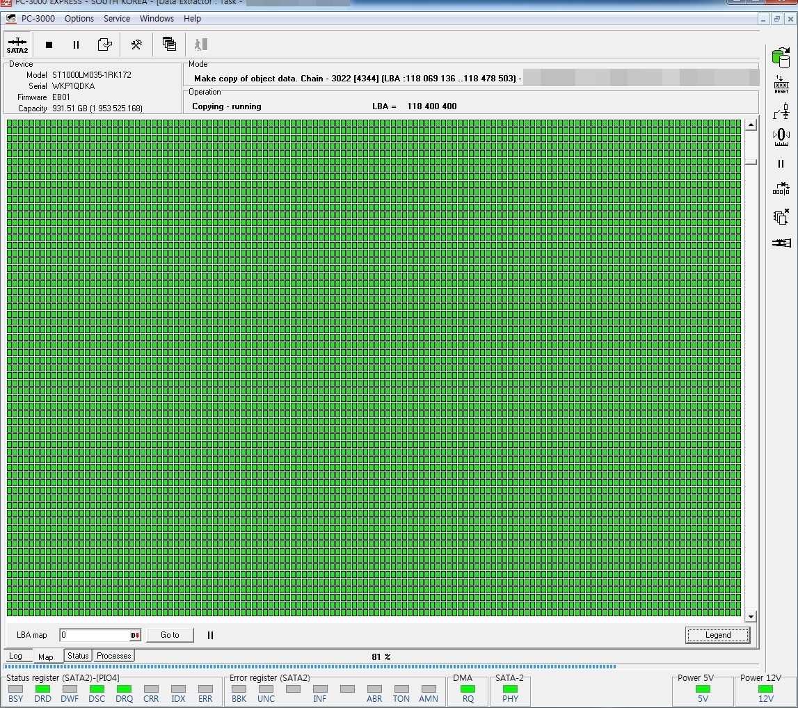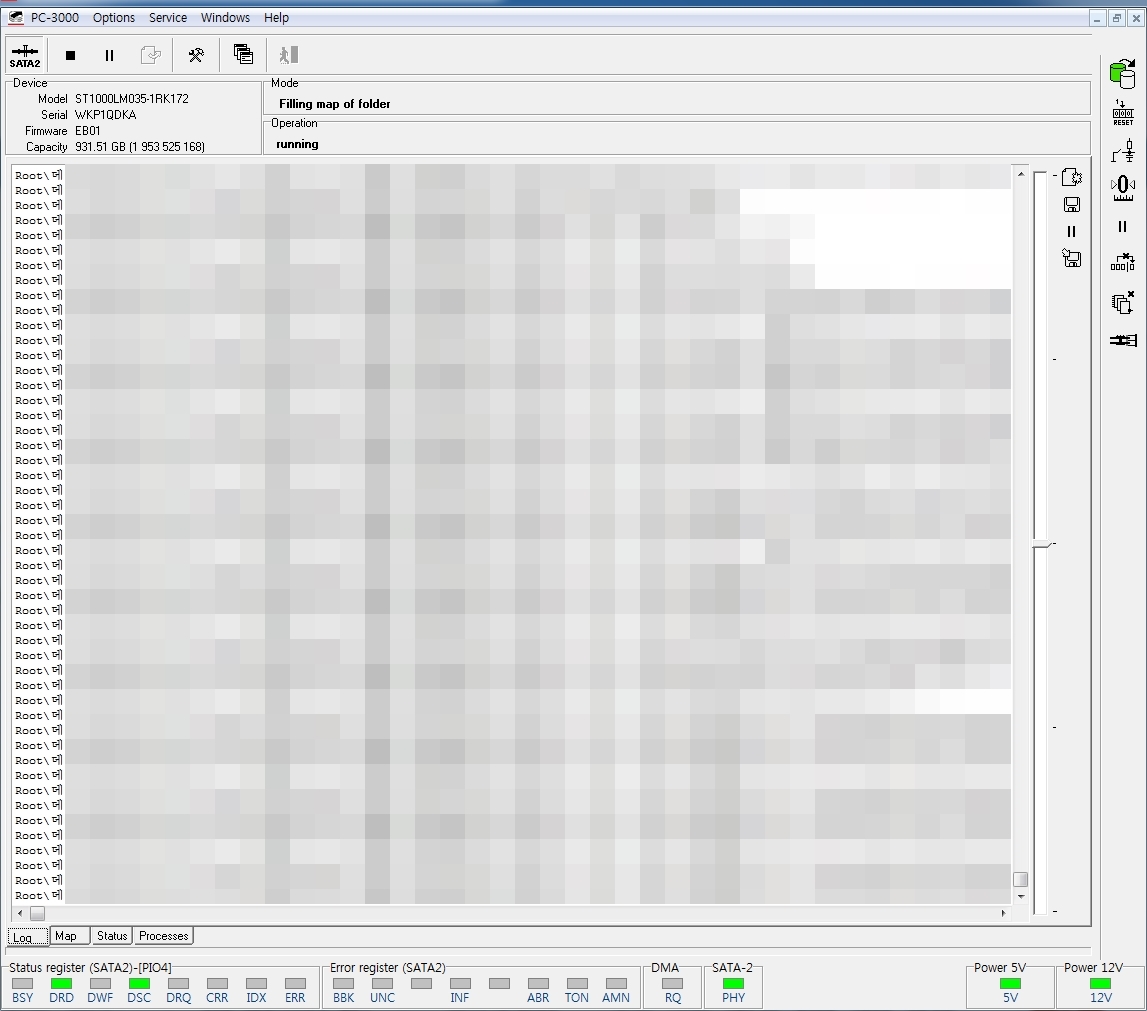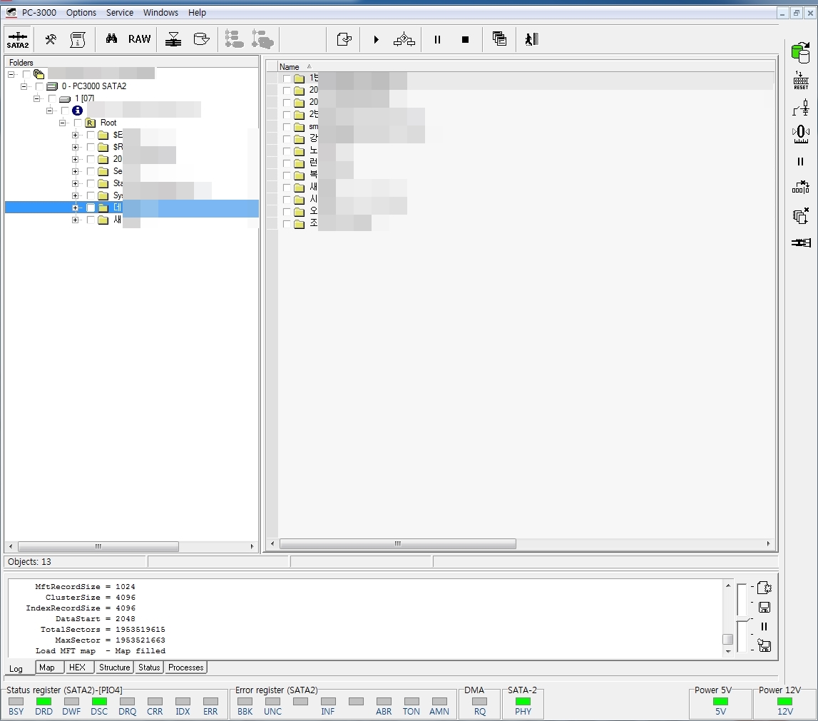 약 35GB 정도의 데이터만 복구되면 나머지데이터는 손실되어도 문제없으니 특정폴더에 대한 데이터만 꼭 복구해달라는 요청이 있었습니다.