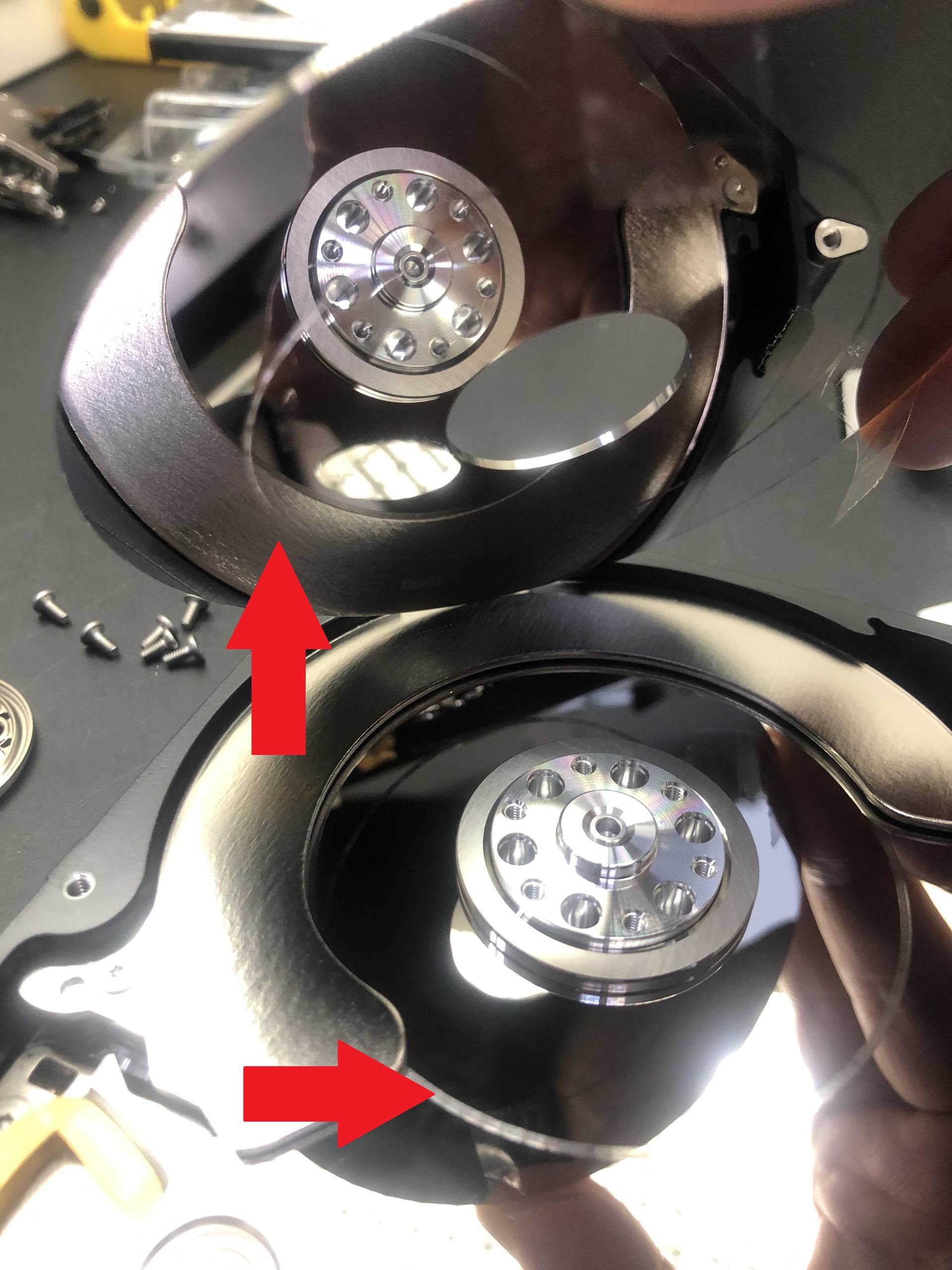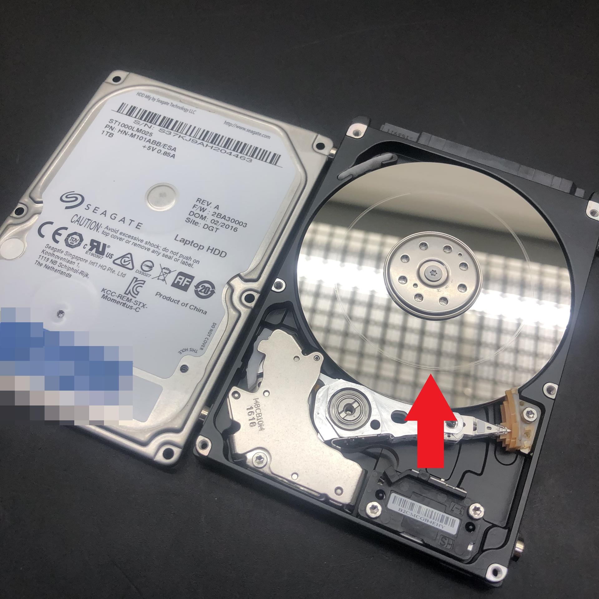 [데이터가 직접적으로 저장 되는 플래터(Mediadisk, Platter)에 스크래치(빨간색화살표) 발생]