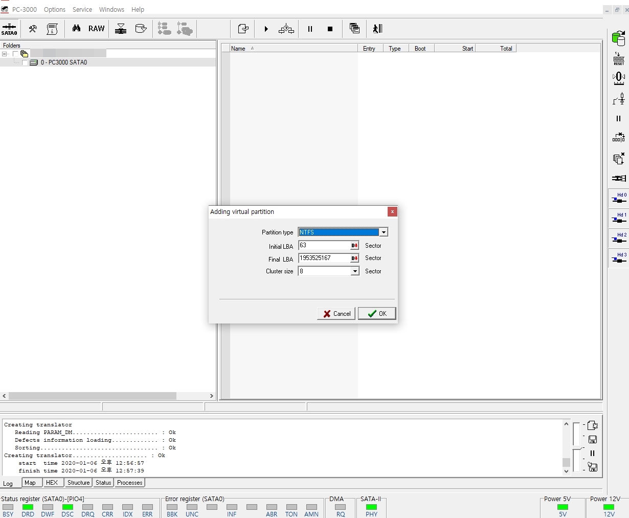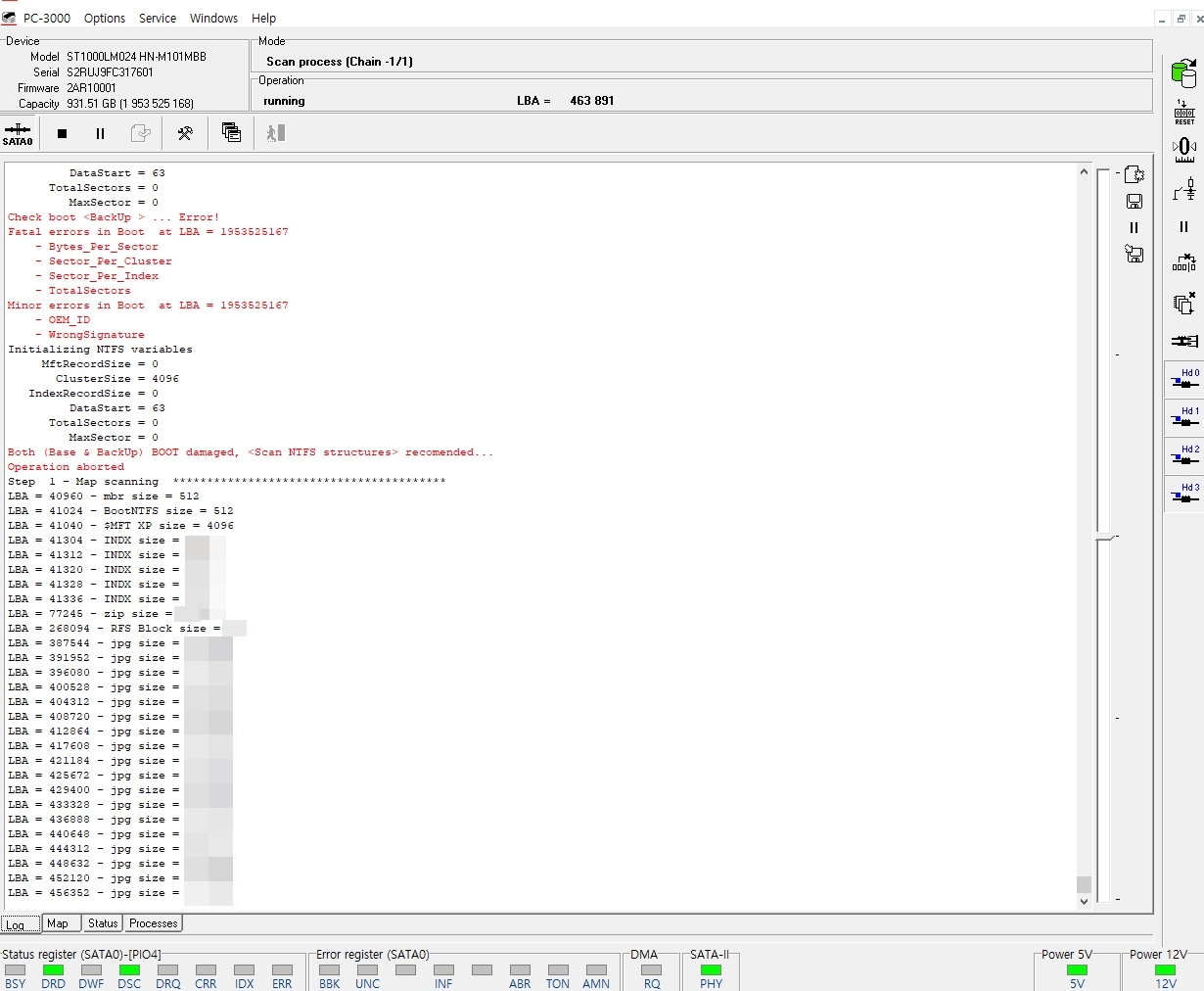 총 19억섹터중 단 6개의 섹터가 손상되었음을 확인 이경우 복구율은 100%라고 봐도 무방