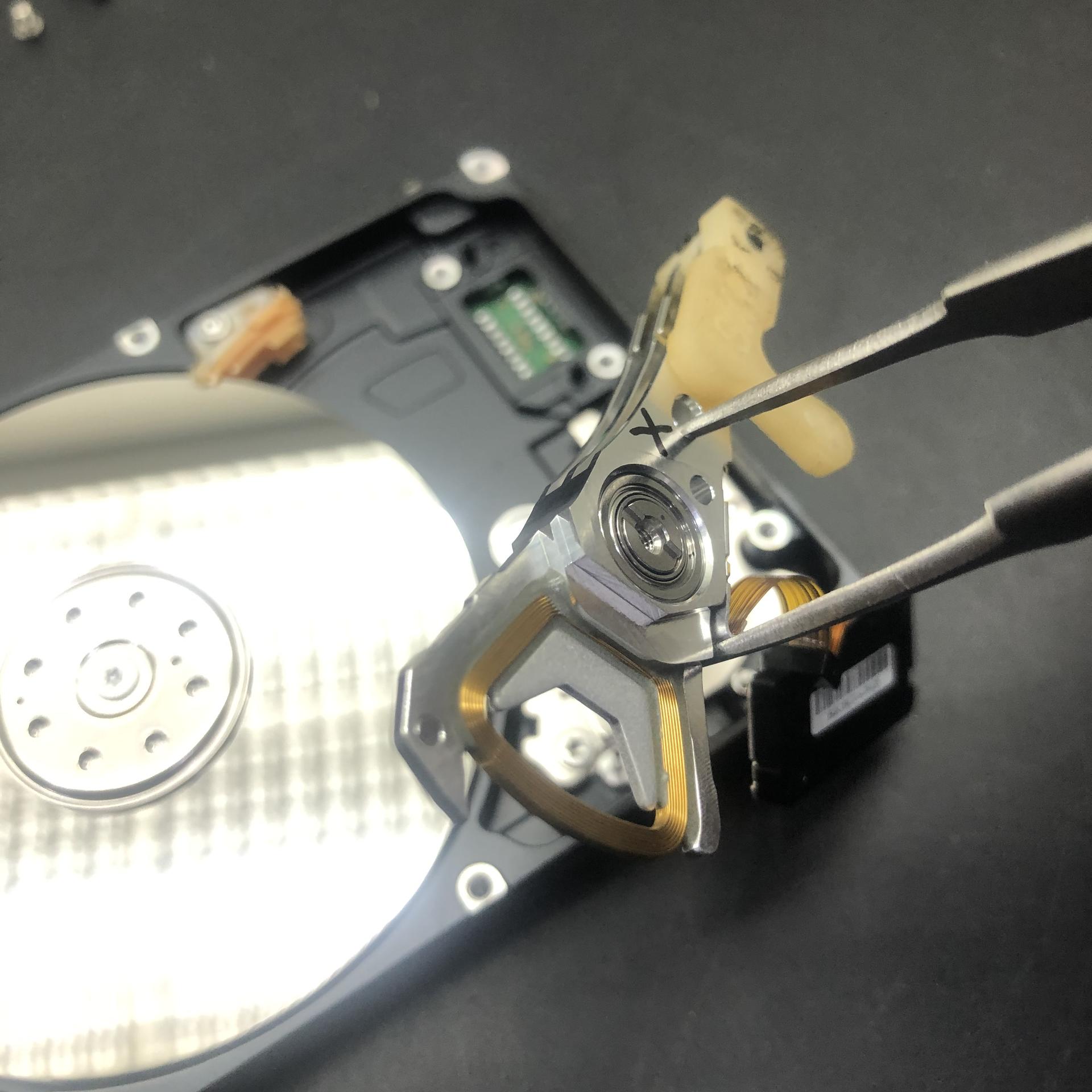 손상된 헤드를 추출하고 동종 하드디스크로 부터 헤드를 이식하여 인식시키는 작업을 시도