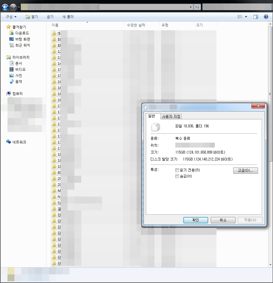 복구장비에서 이미지작업된 디스크로부터 데이터를 추출하여 약 115GB의 데이터 확보