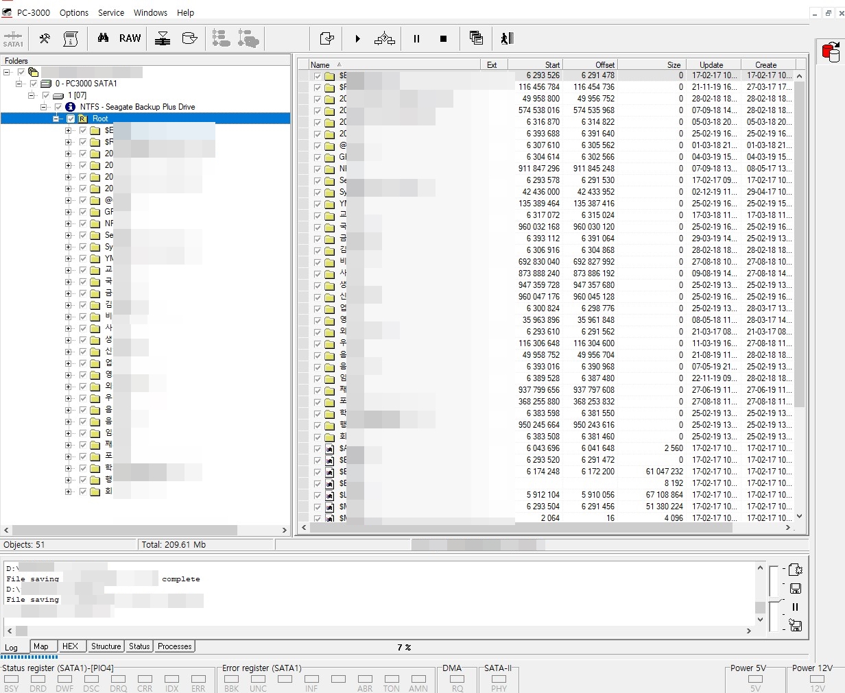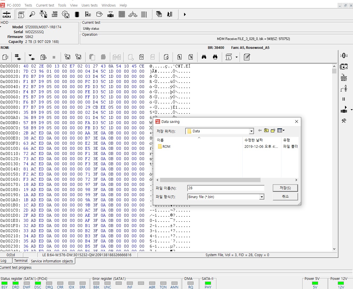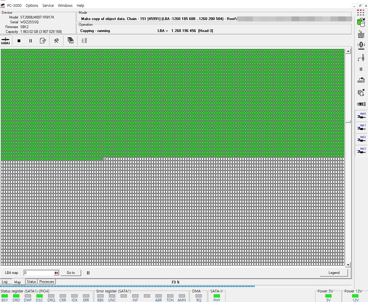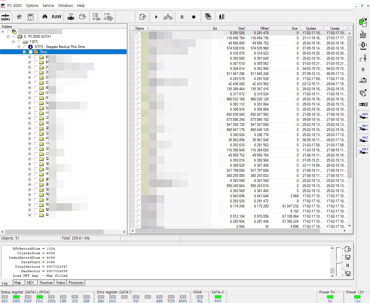 접수된 외장하드는 케이스로부터 분리하여 복구장비인 PC-3000E를 통해 디스크 유틸리티가 실행되는지 확인