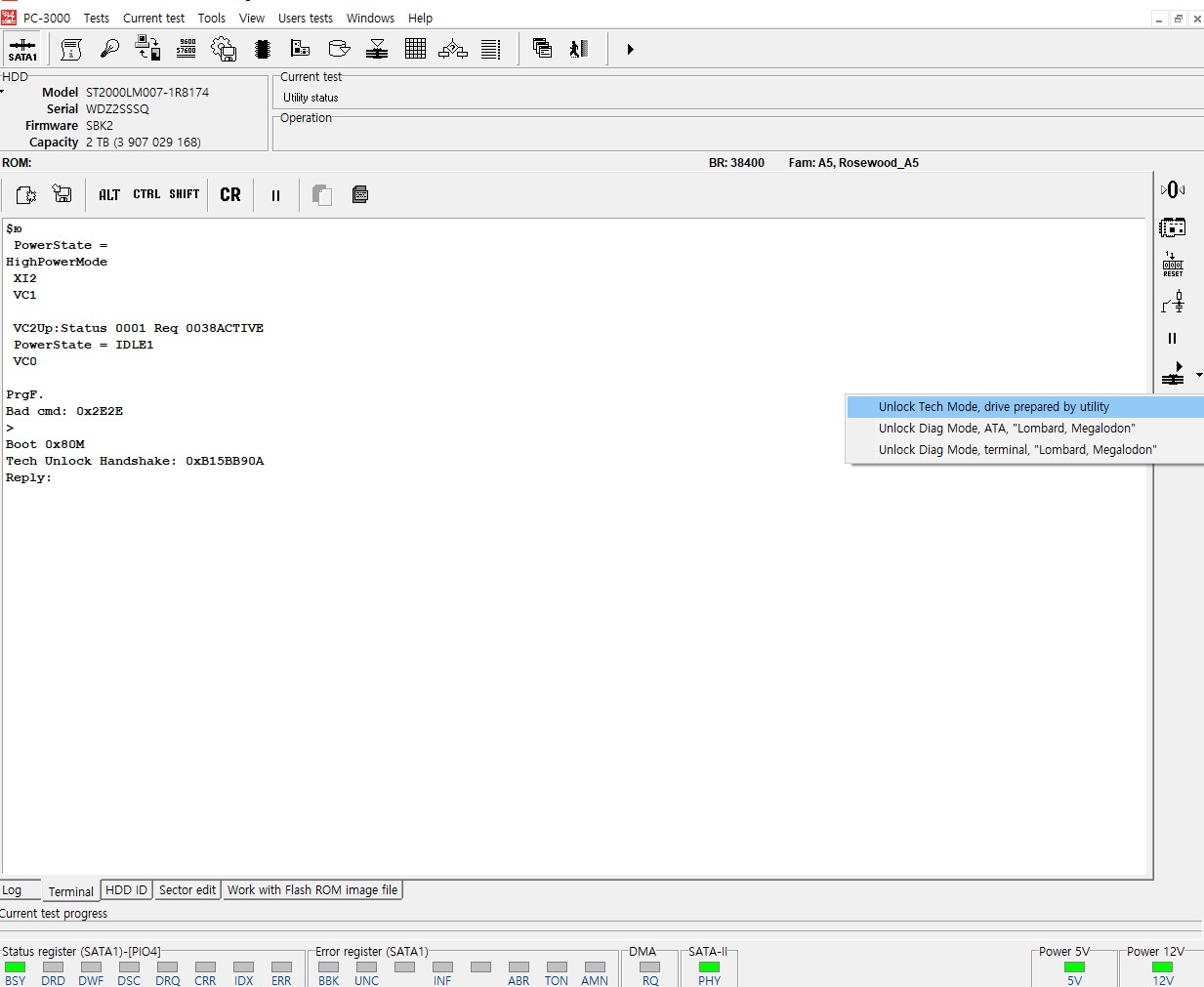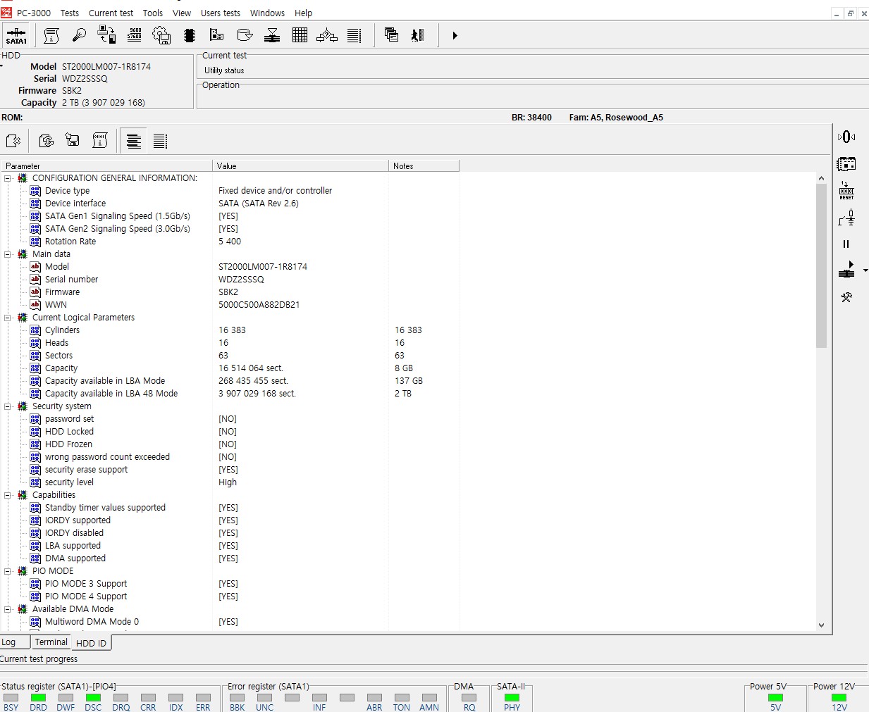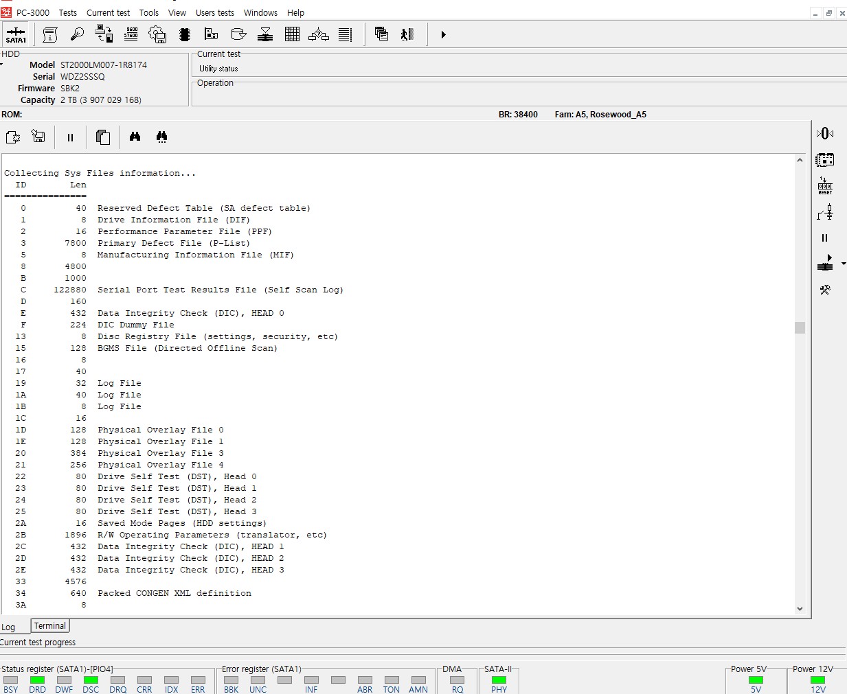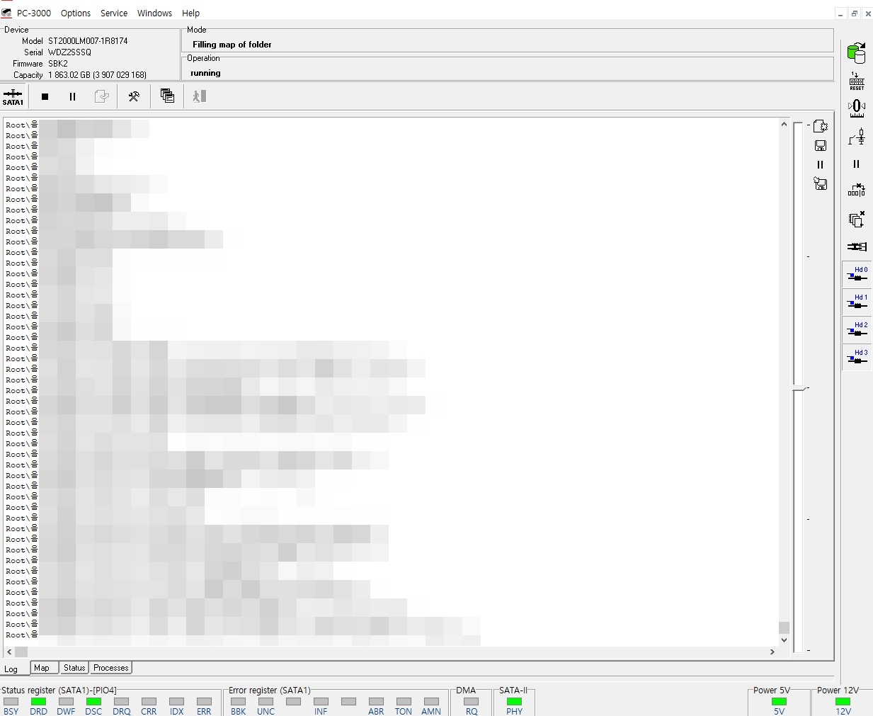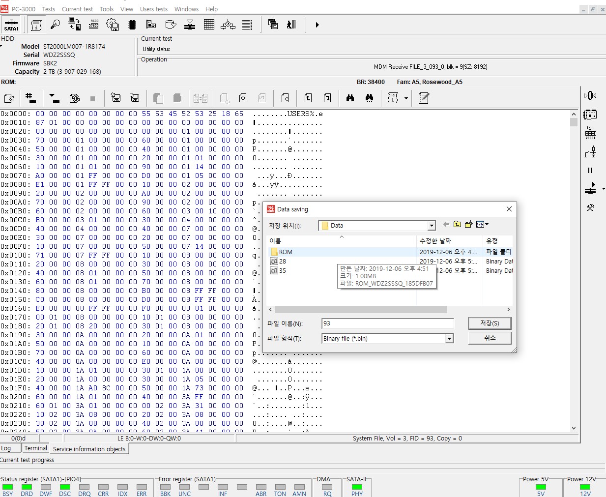 접수된 외장하드는 케이스로부터 분리하여 복구장비인 PC-3000E를 통해 디스크 유틸리티가 실행되는지 확인