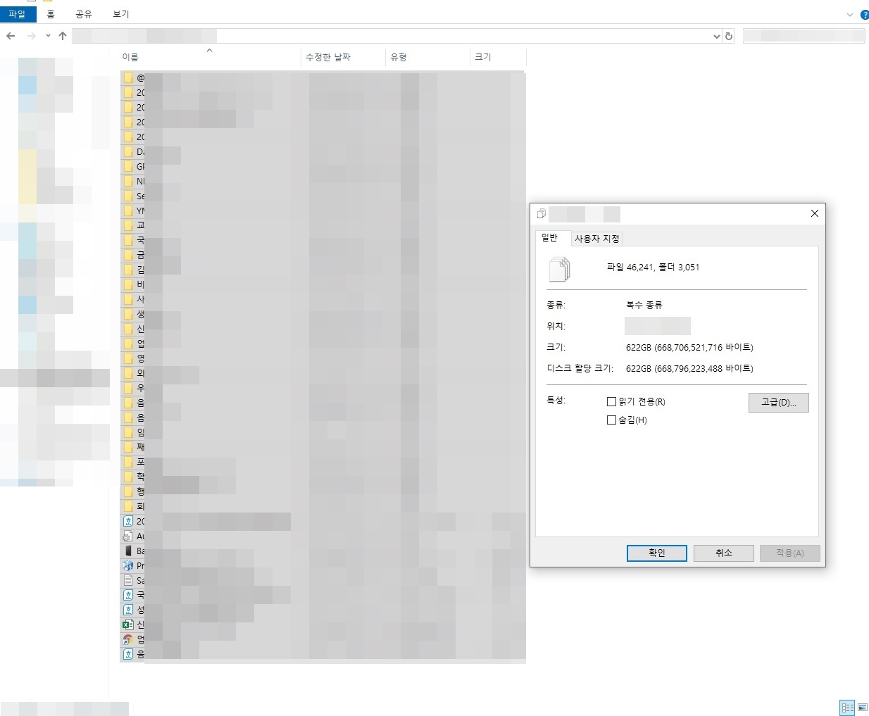 외장하드에 저장된 데이터의 폴더구조 및 용량, 파일수 를 대략적으로 유추 할 수 있음