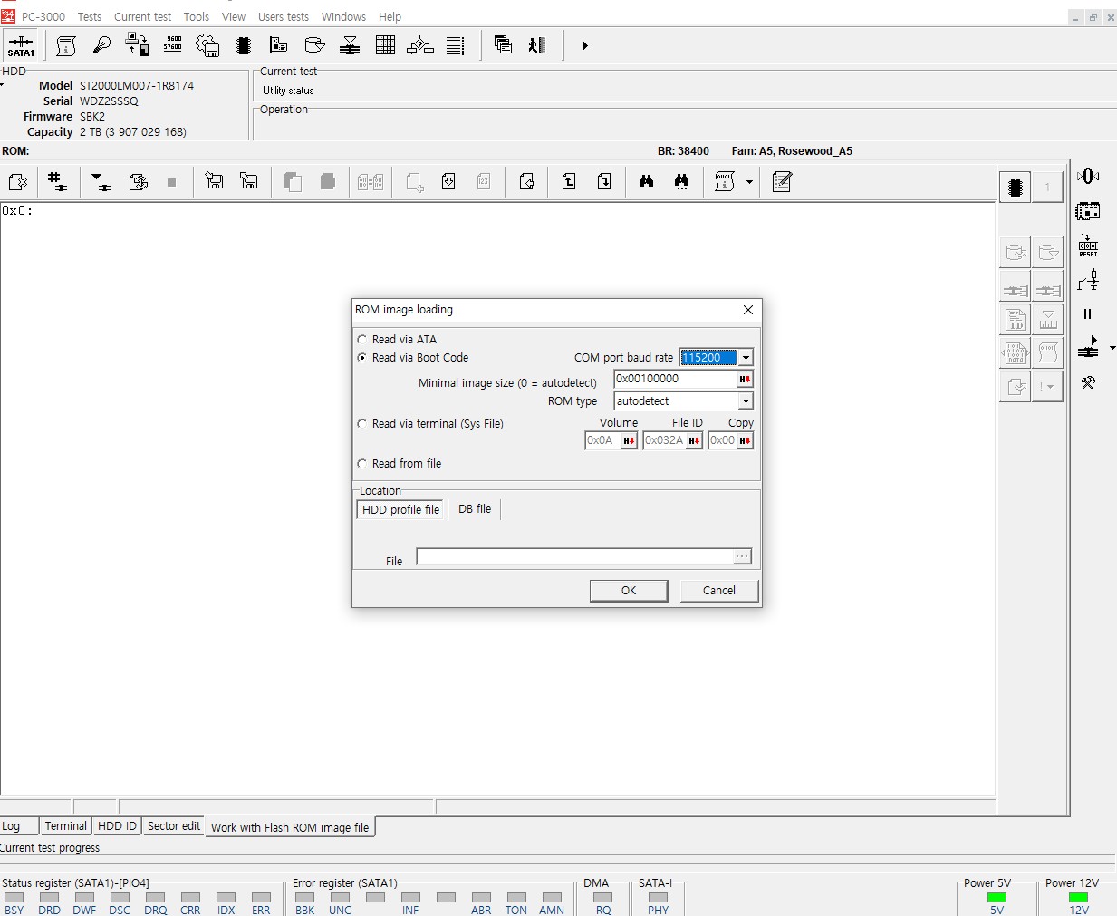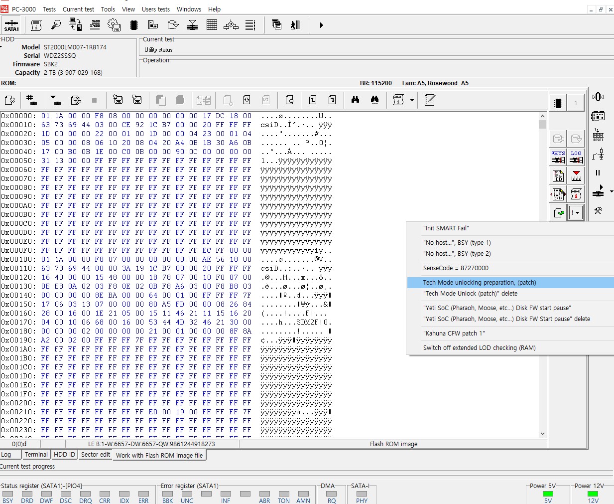 유틸리티가 실행되지만 Rosewood 폼펙터(c8,a5)모델은 디스크정보영역이 암호화 되어 있기에 정상적인 엑세스가 불가능