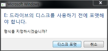 무시하고 사용중 12월 22일 외장하드를 연결해도 느리게 인식이 되다가 한참 후에 '포맷하시겠습니까? 메세지 출력