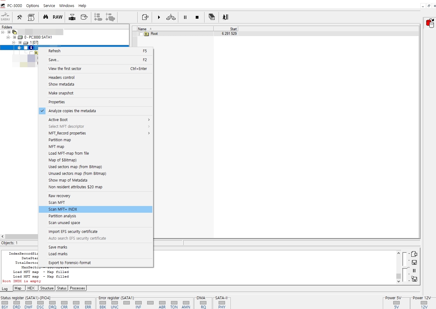 Disk Analyze 및 DiskMFT Scan작업 과 인덱스 검색을 통해 폴더구조 및 데이터ROOT 확인