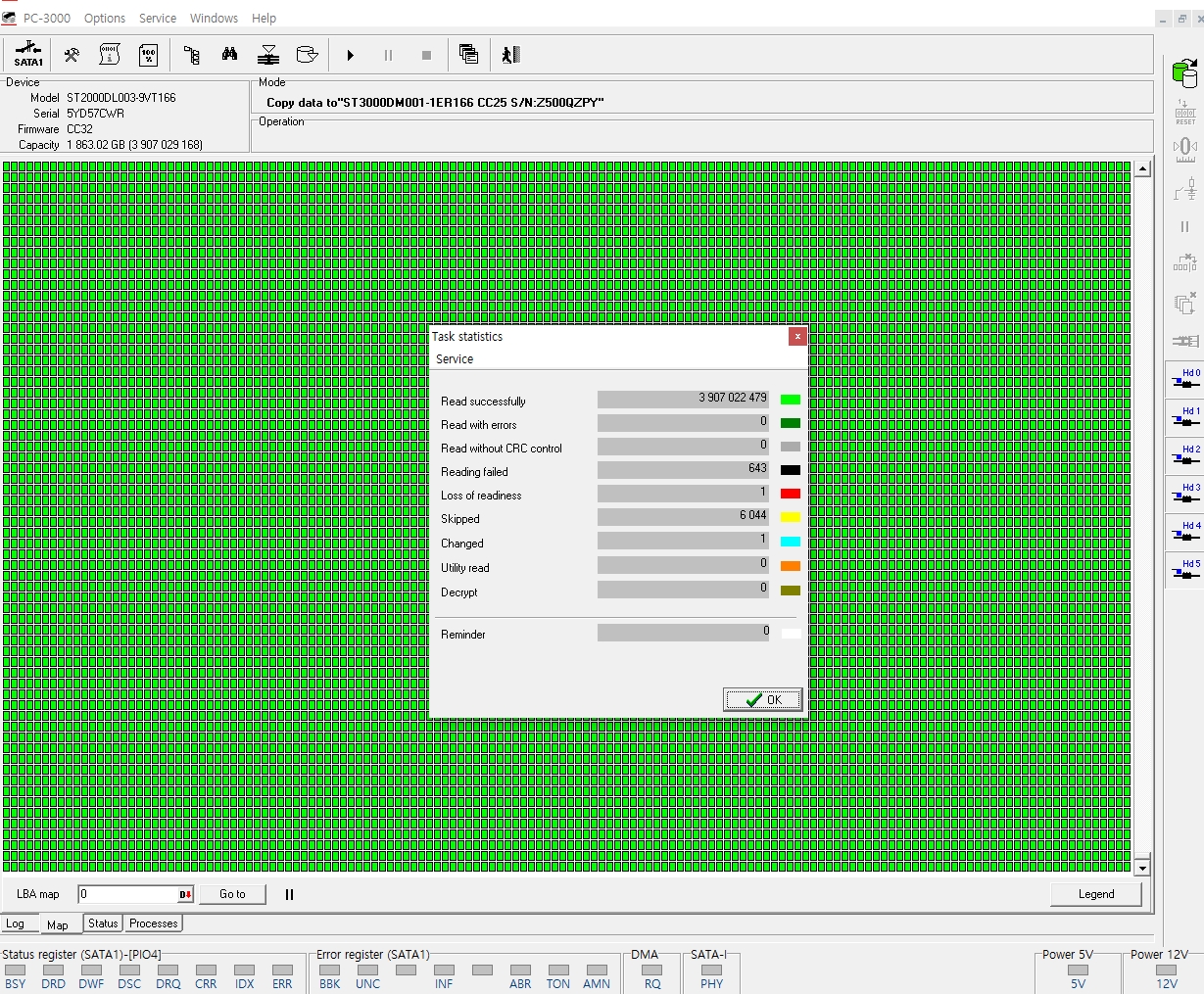 별도의 하드디스크에 이미지작업(Dump) 진행 / 의뢰된 하드디스크에 복제될 디스크는 3TB급 하드디스크