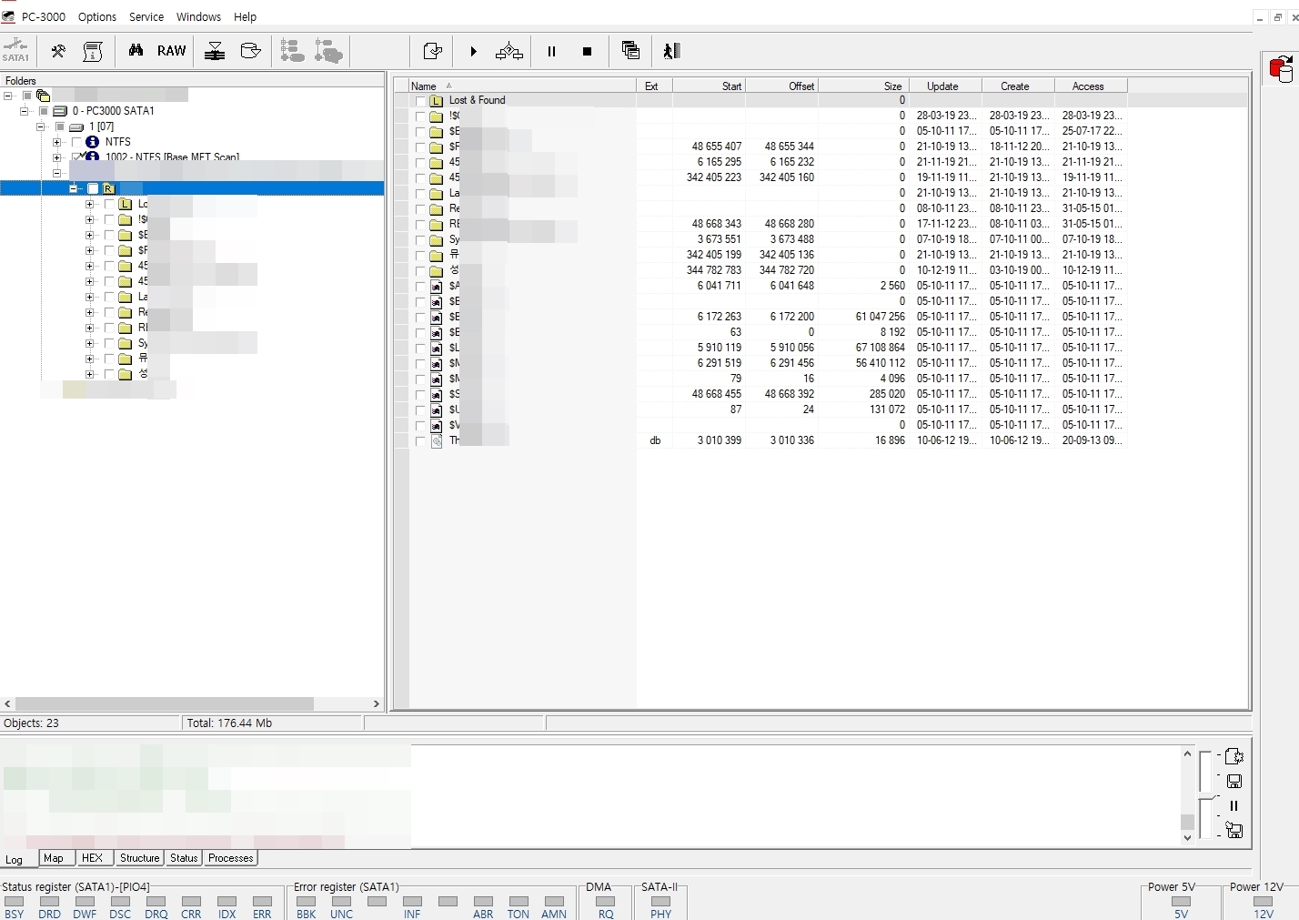 헤드맵 체크 후 데이터 폴더구조 및 실제데이터 영역을 확인하려 했으나 손상영역 때문에 폴더구조 확인 불가