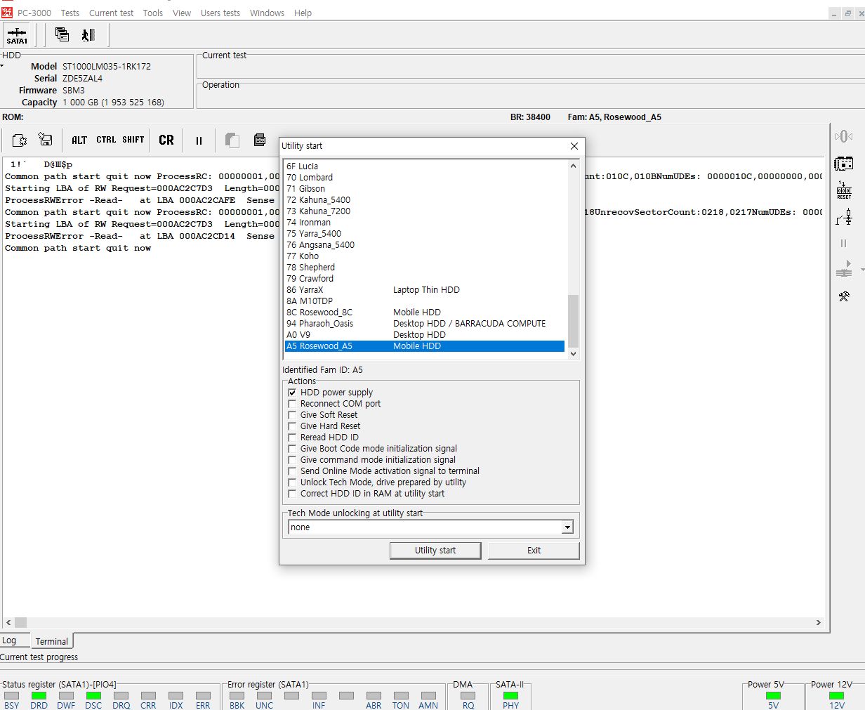 초반에 미디어손상을 의미하는 오류메세지들이 터미널케이블을 통해 출력되었으나 정상적으로 디스크 인식성공