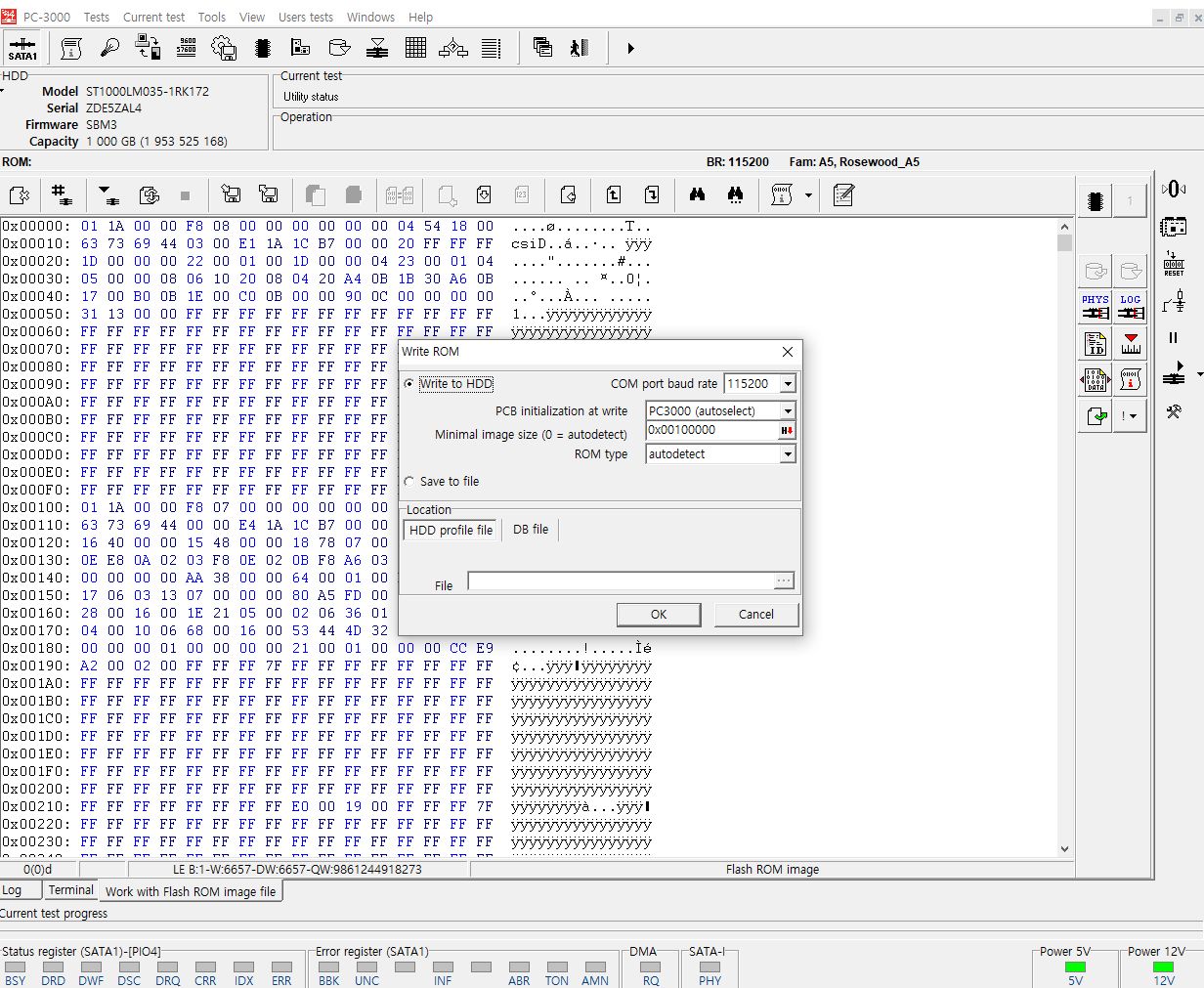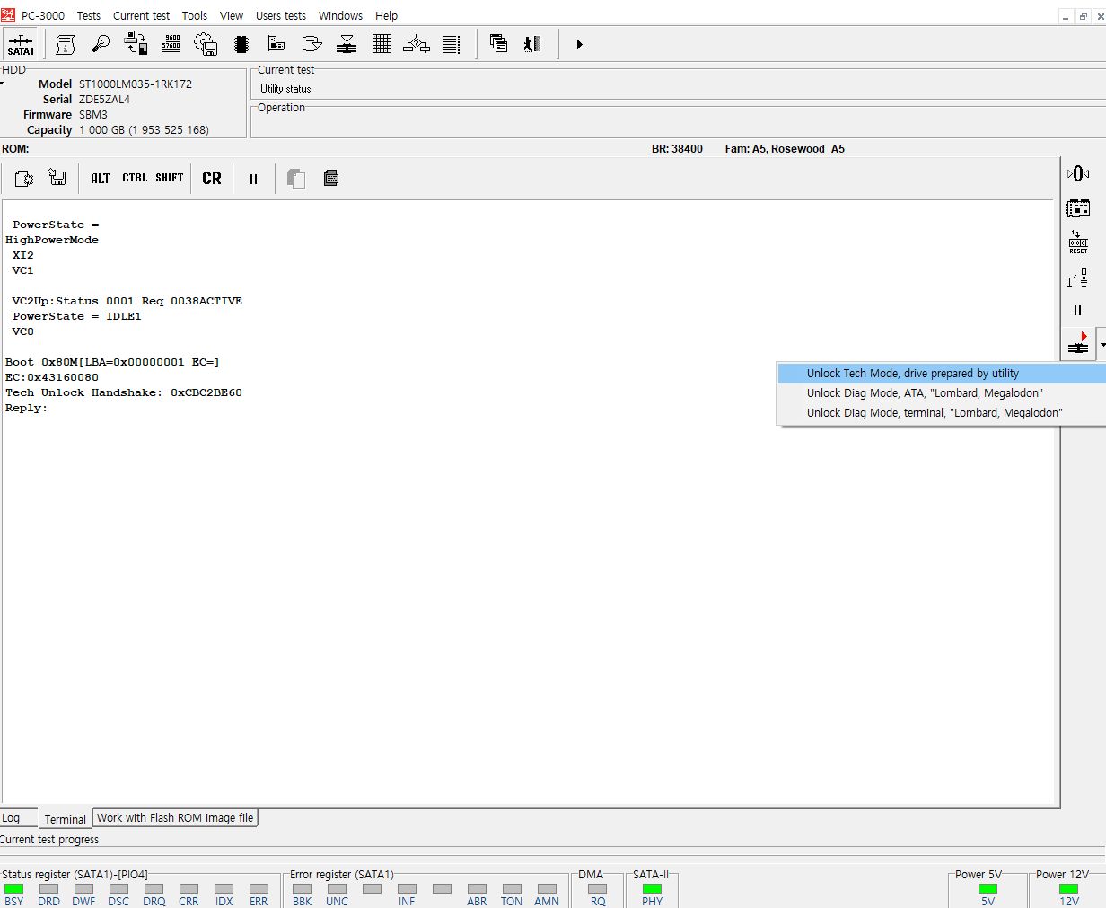 정상헤드를 이식하여 복구장비인 PC-3000E에 연결하여 전원공급 진행