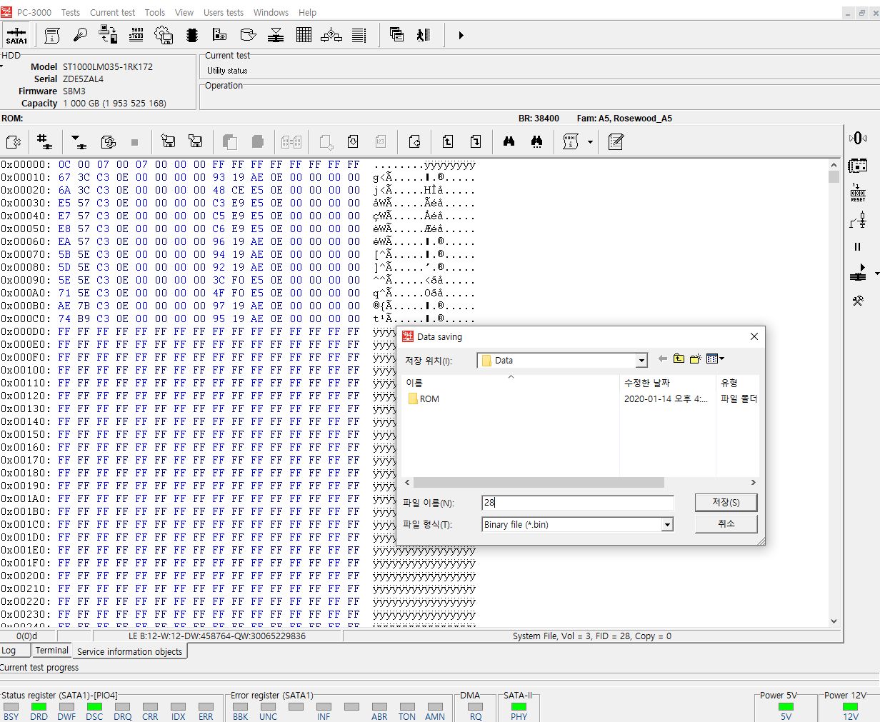 디스크의 헤드가 데이터의 어느영역을 엑세스 하는지 헤드맵을 체크하고 데이터가 저장된 폴더구조를 확인하고 덤프작업 완료