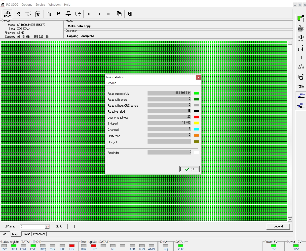 이 작업은 의뢰된 하드디스크로 부터 바로 데이터를 추출하면 디스크에 무리를 주고 2차 3차 헤드교체작업을 진행해야 할 확률이 높아