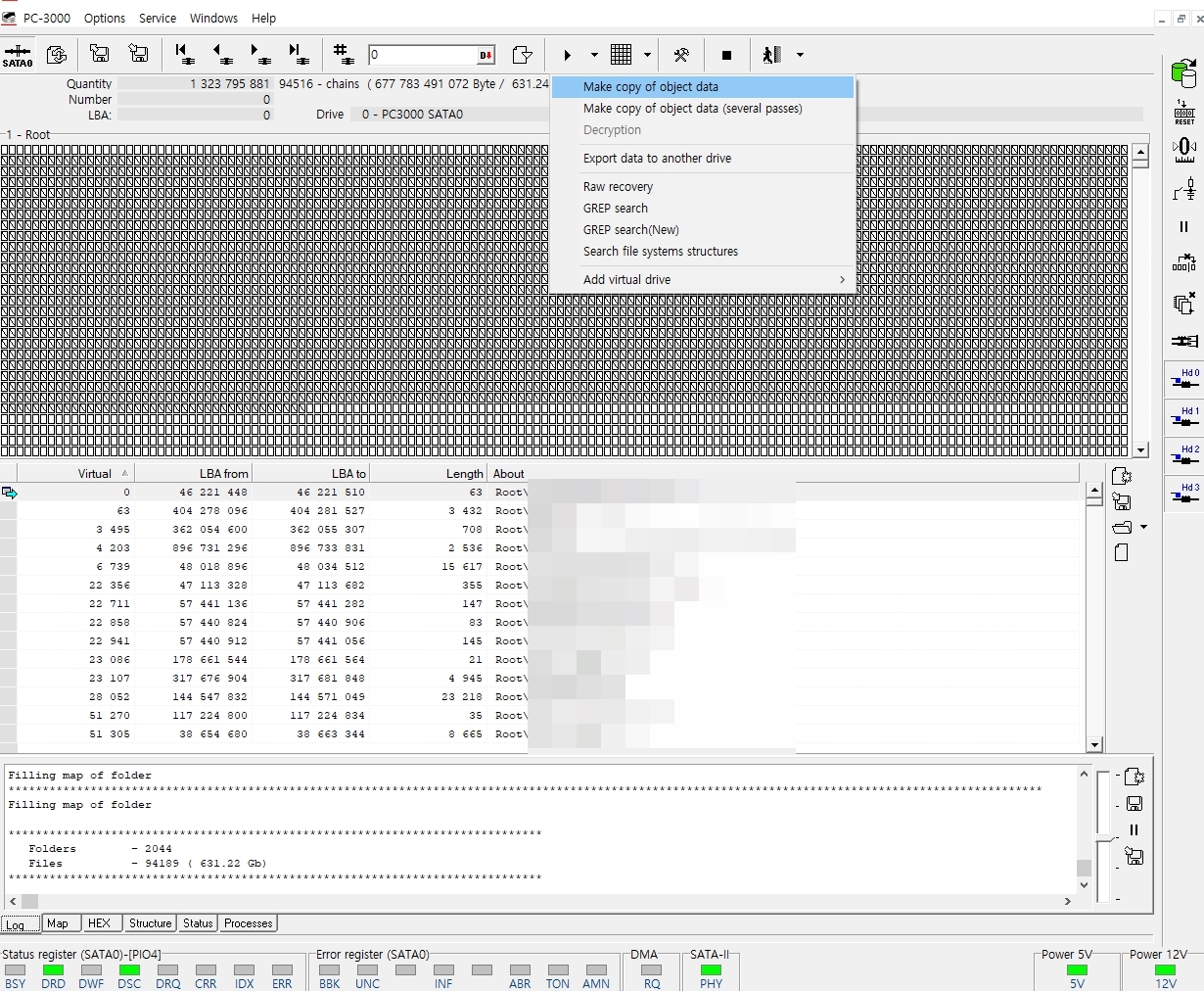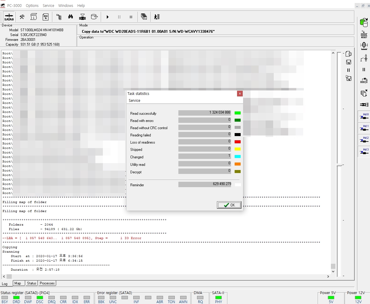 의뢰된 하드디스크로 부터 안전하게 데이터를 추출하기 위해 별도의 디스크에 덤프작업(Dump 혹은 이미지작업)을 진행