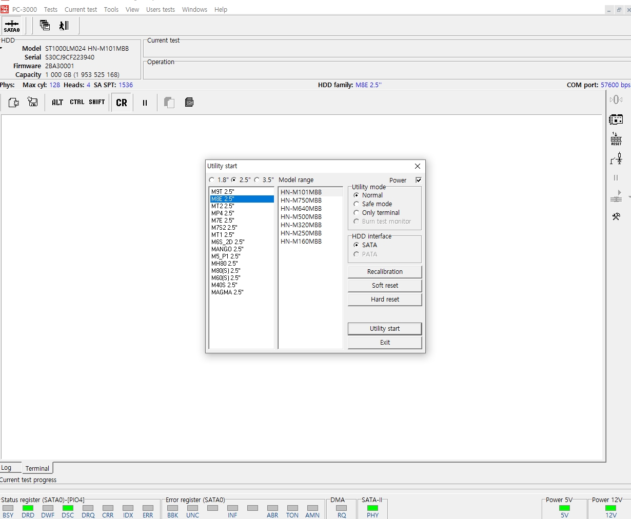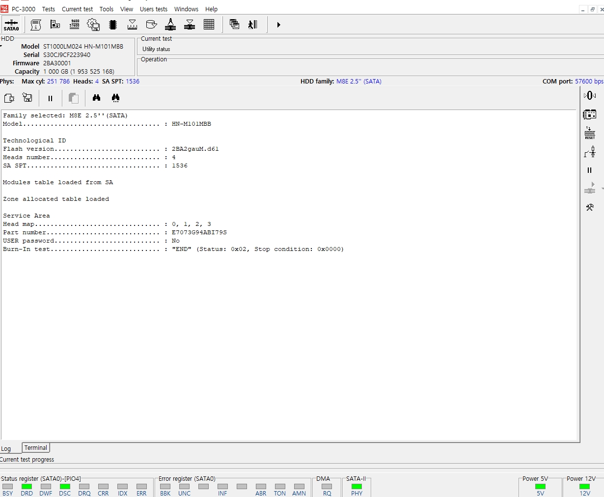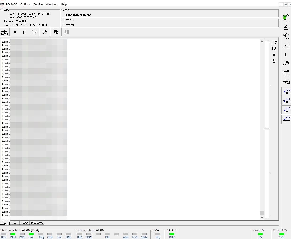 현미경을 통하여 헤드의 문제가 없음을 확인한 후 다시 커버를 봉인한 후 복구장비인 PC-3000E에 연결하여 인식여부 확인