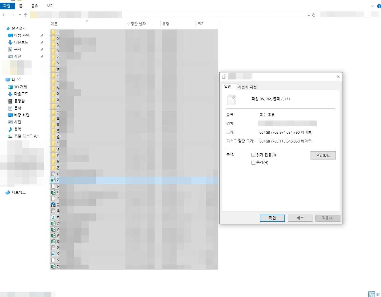 약 630GB에 대한 데이터를 확인하여 빠른 작업을 위해 데이터가 저장된 위치만 복제작업 진행