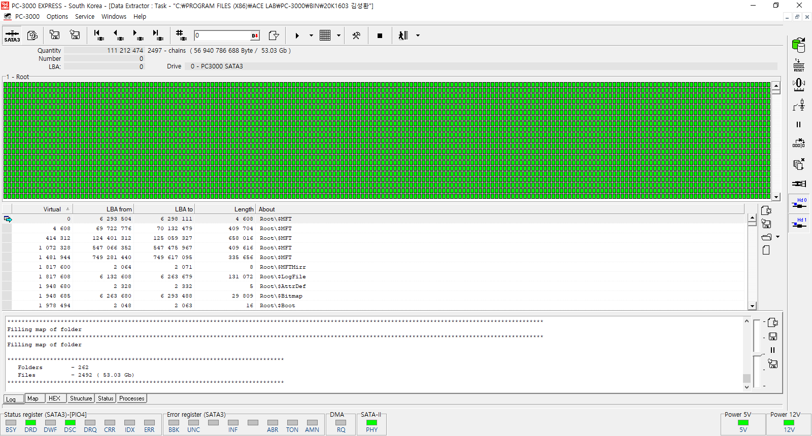 (기술 유출 방지로 데이터복구 장비 사용 설명은 최소화 하였습니다.)