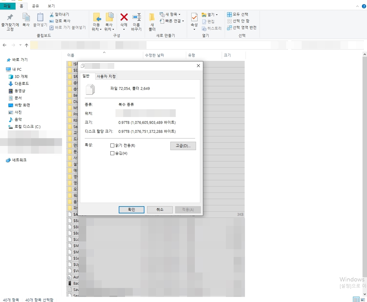 실제 사용량 데이터는 약 1TB정도로 사진 문서류 중요