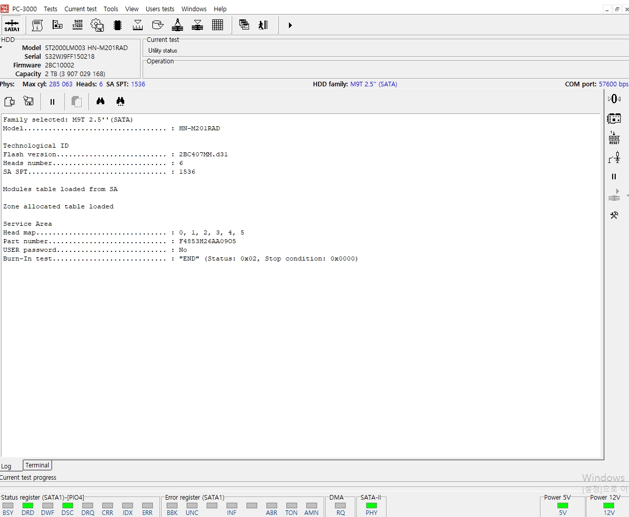 2.진단결과로 봤을때 정상적인 디스크 구동을 위해서는 동종모델의 해드가 필요한 상태