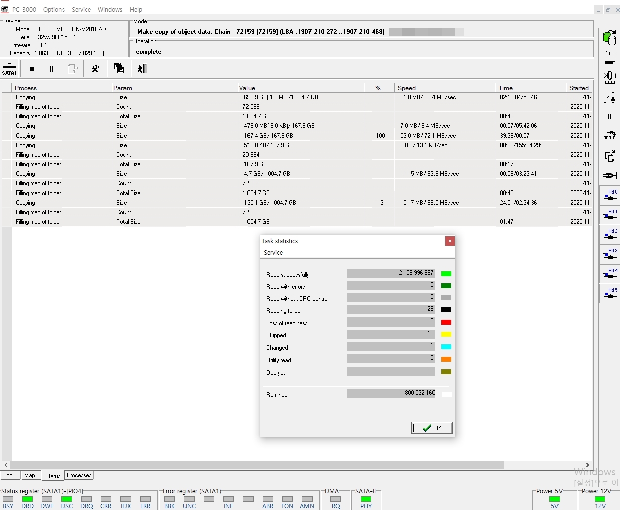 7.복제작업 도중 경미한 손상이 발견되었으나 99.9% 덤프작업이 완료되었으므로 복구율은 매우 높을것으로 예상