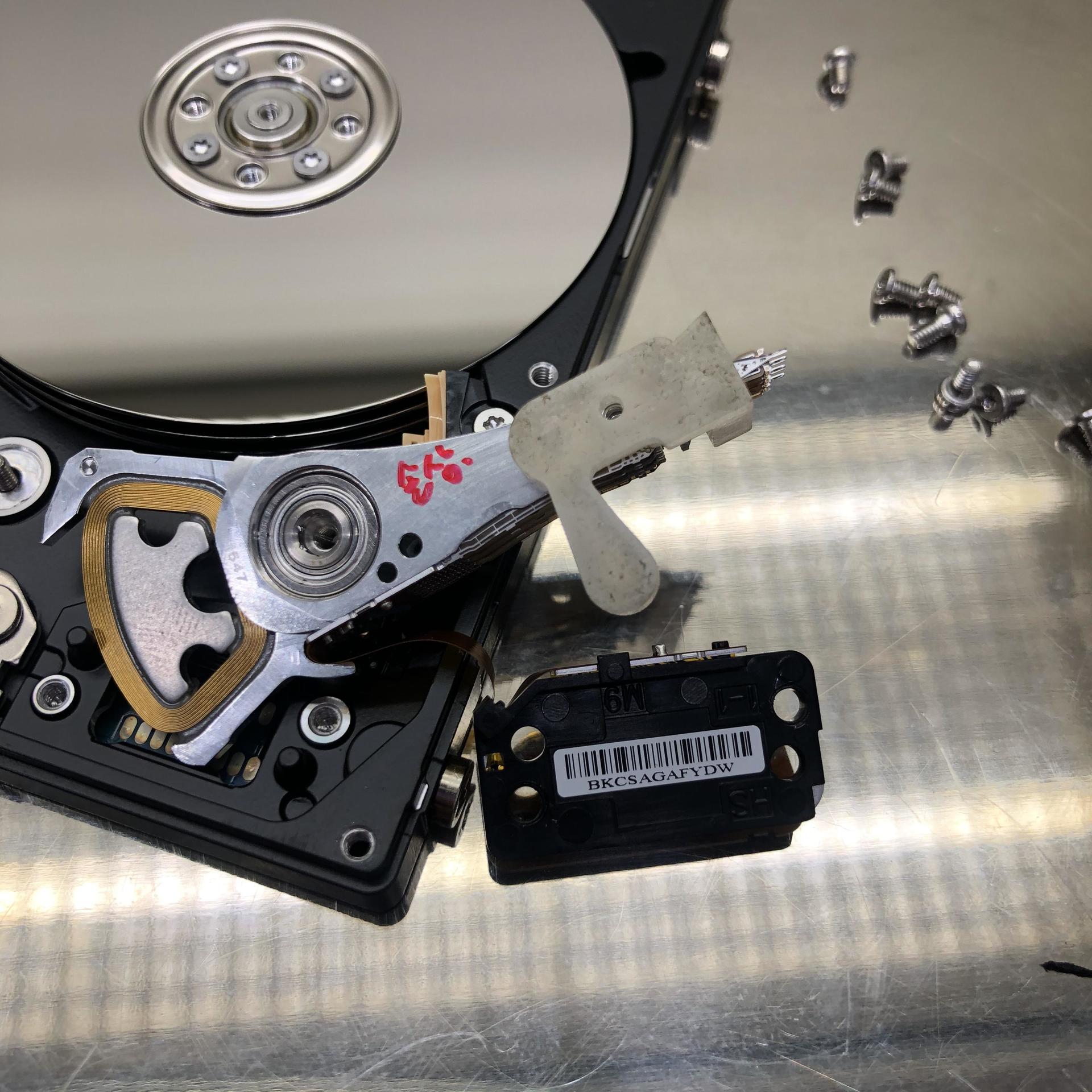 외장하드가 낙하충격으로 인하여 디스크 내부 해드어셈블리(엑세스암)이 손상되면서