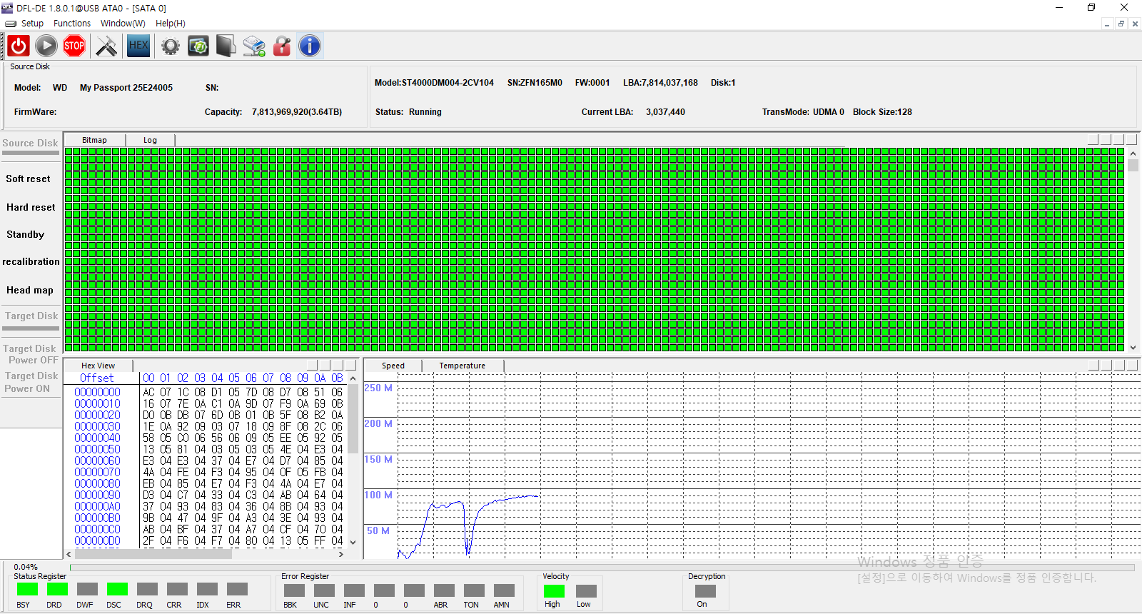 - 동작음은 정상적이나 외장하드의 데이터영역에 배드섹터가 다수 발생