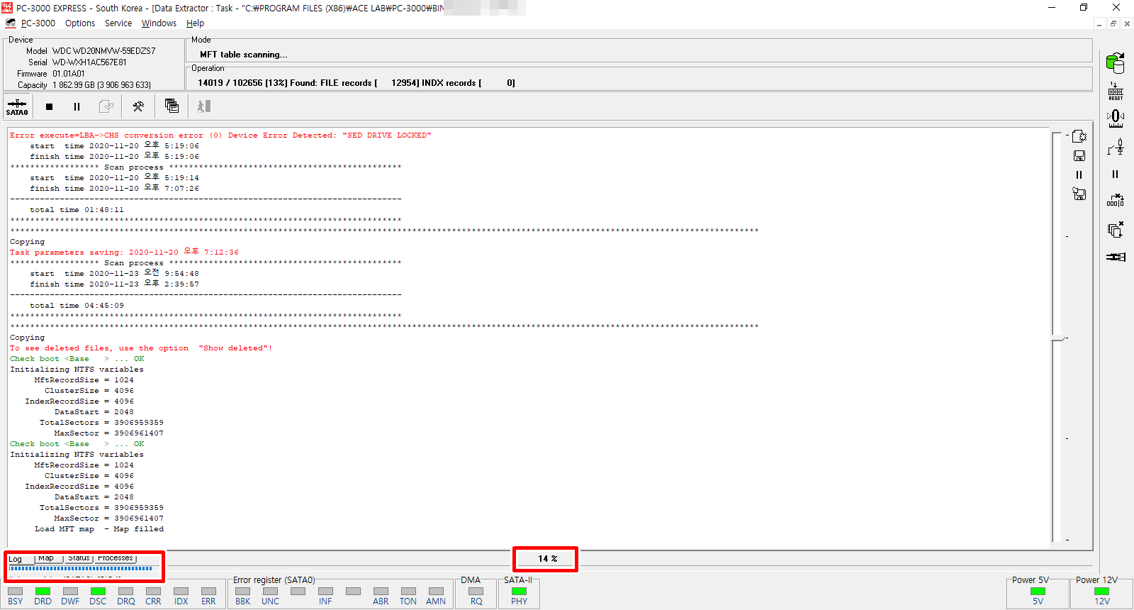 (기술 유출 방지로 데이터복구 장비 사용 설명은 최소화 하였습니다.)