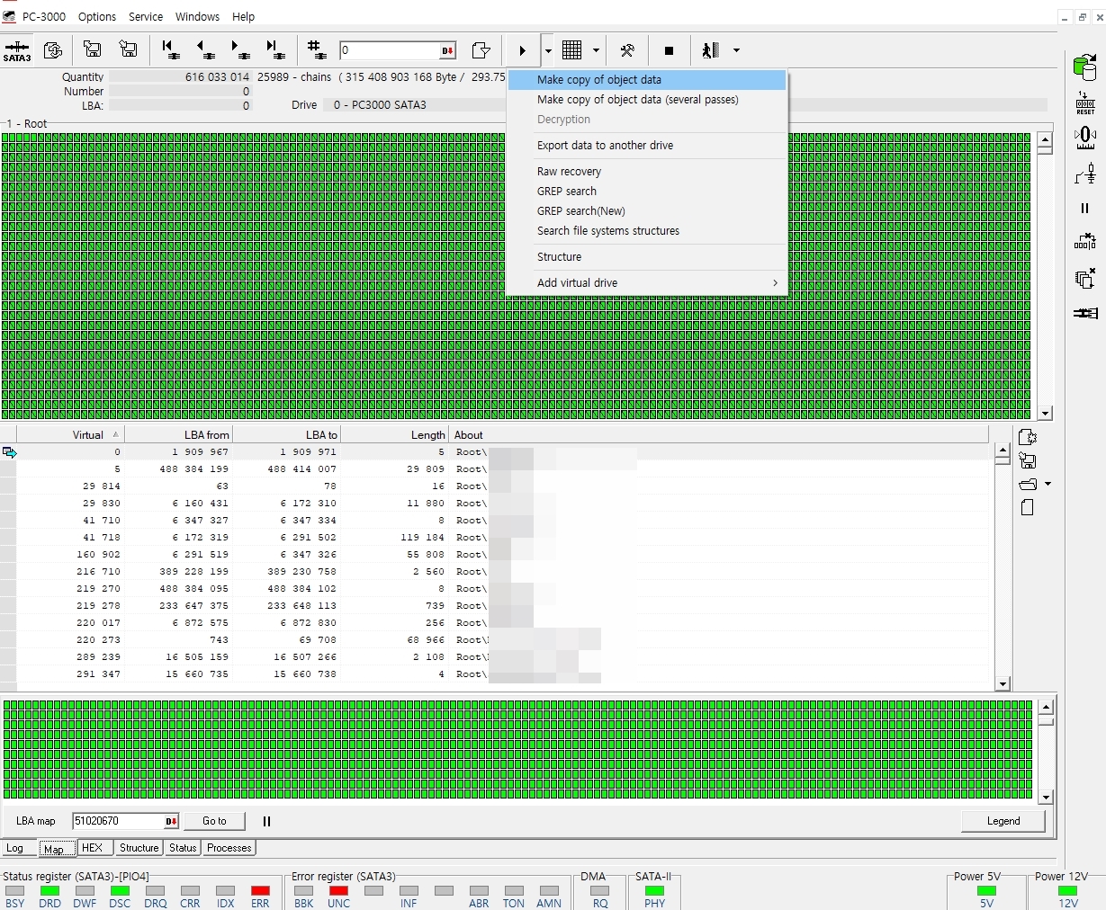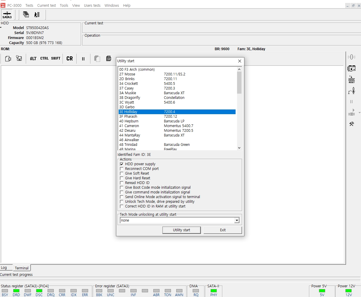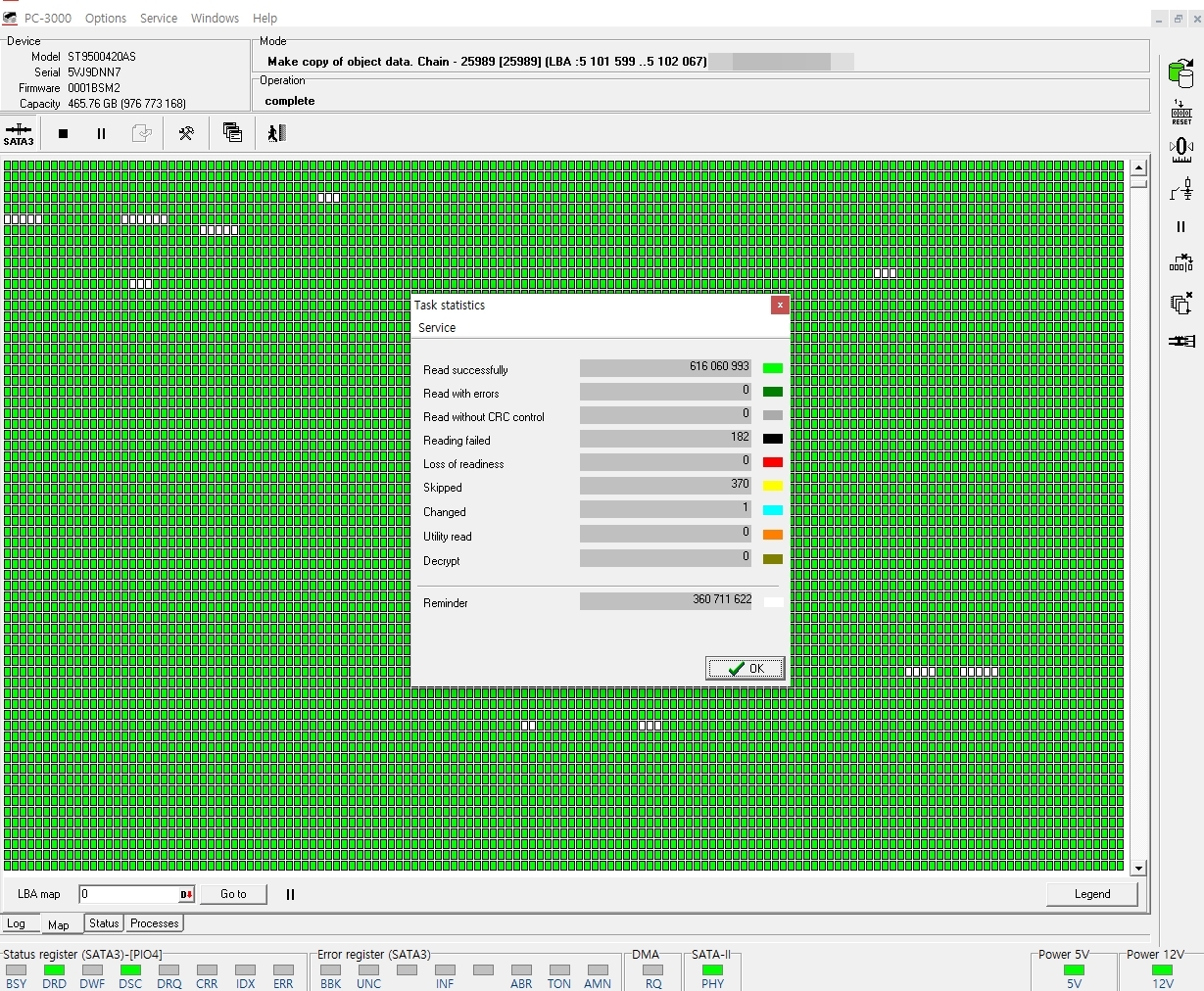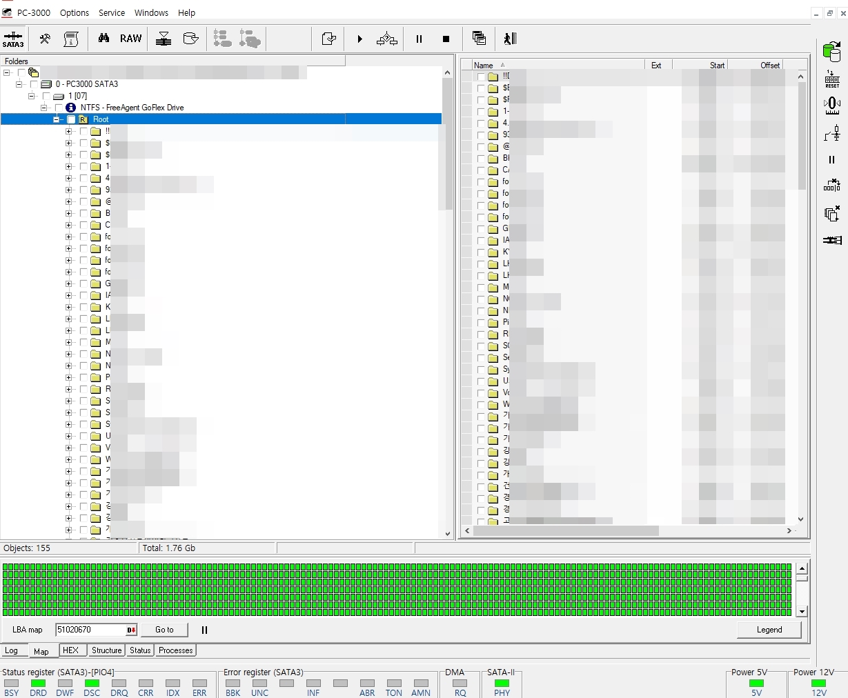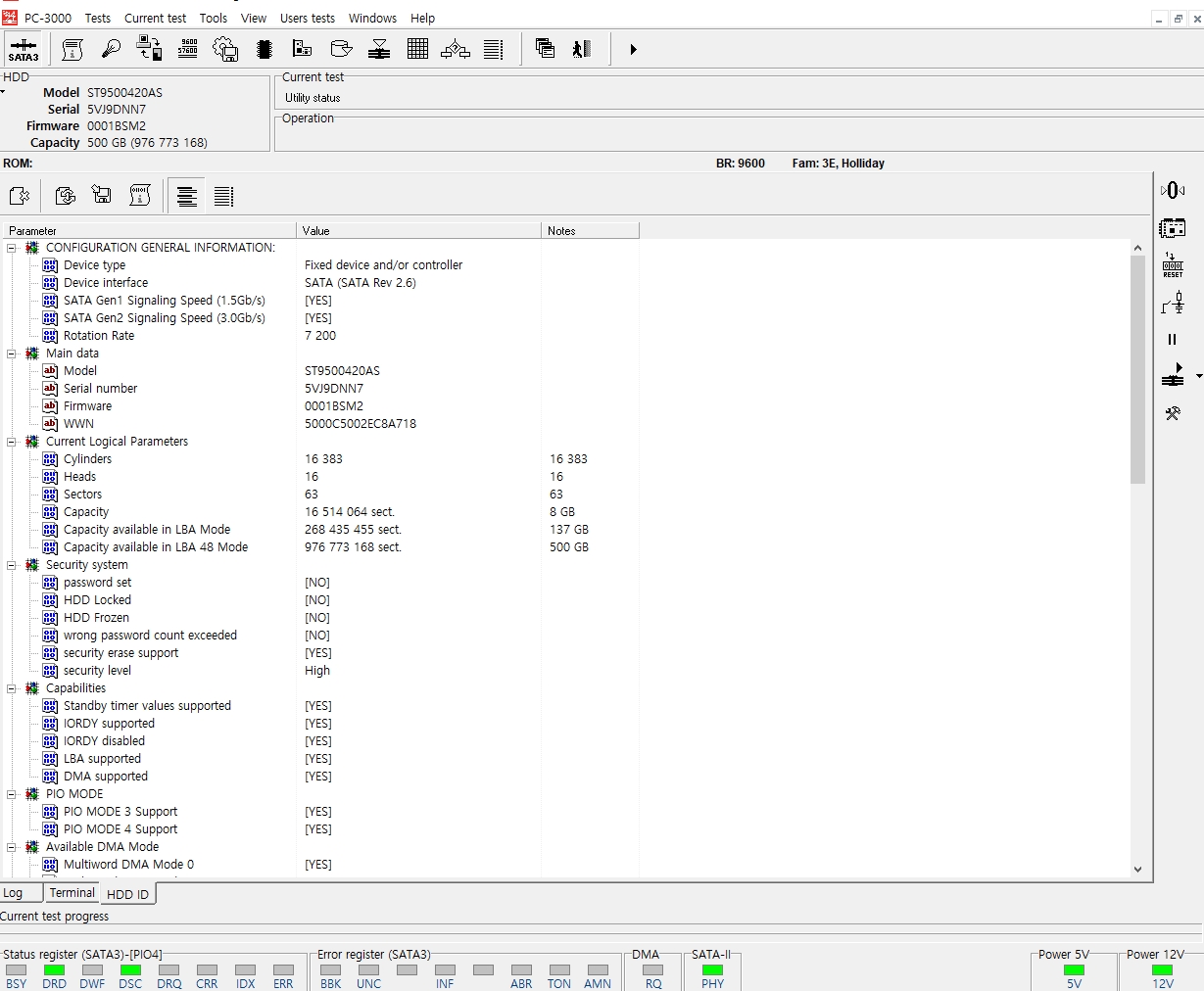 -복구장비인 PC-3000E를 통하여 전원을 공급하여 하드디스크 정상구동 확인