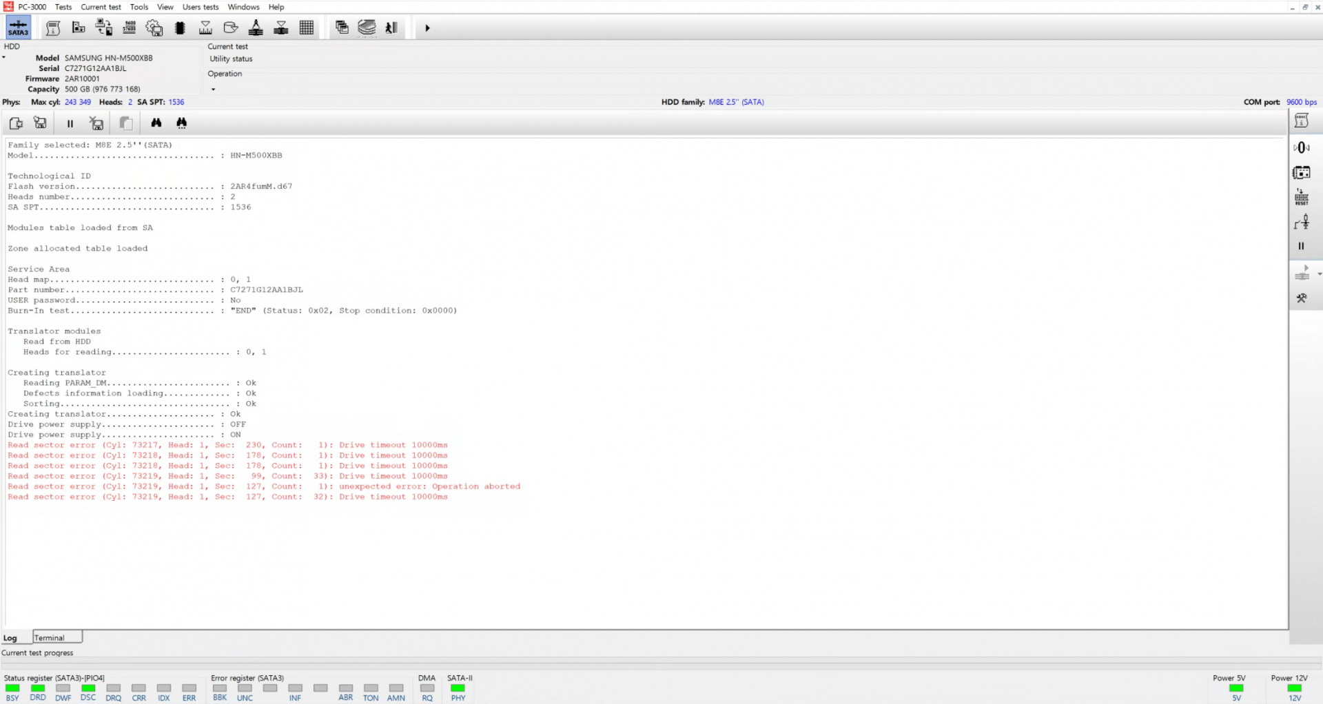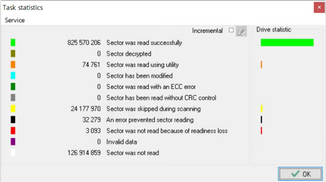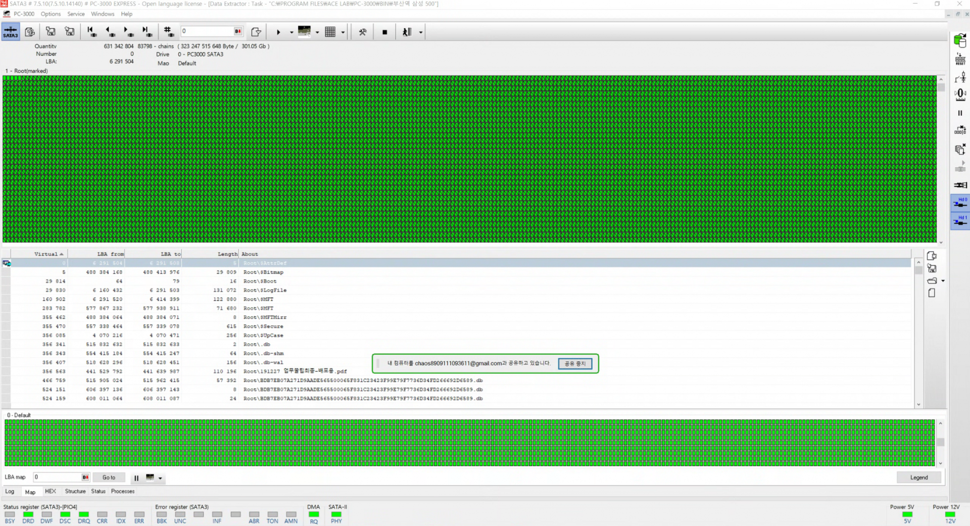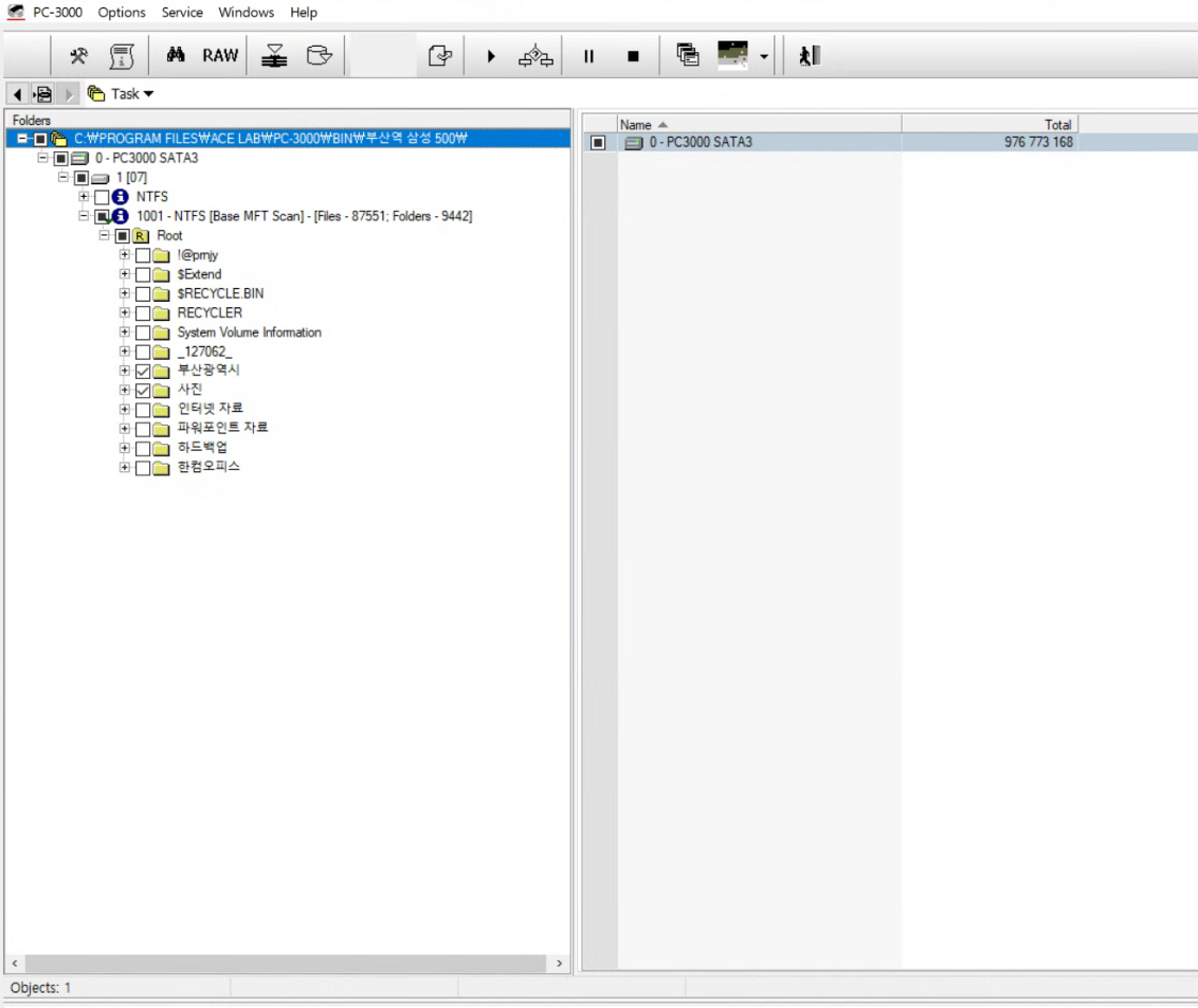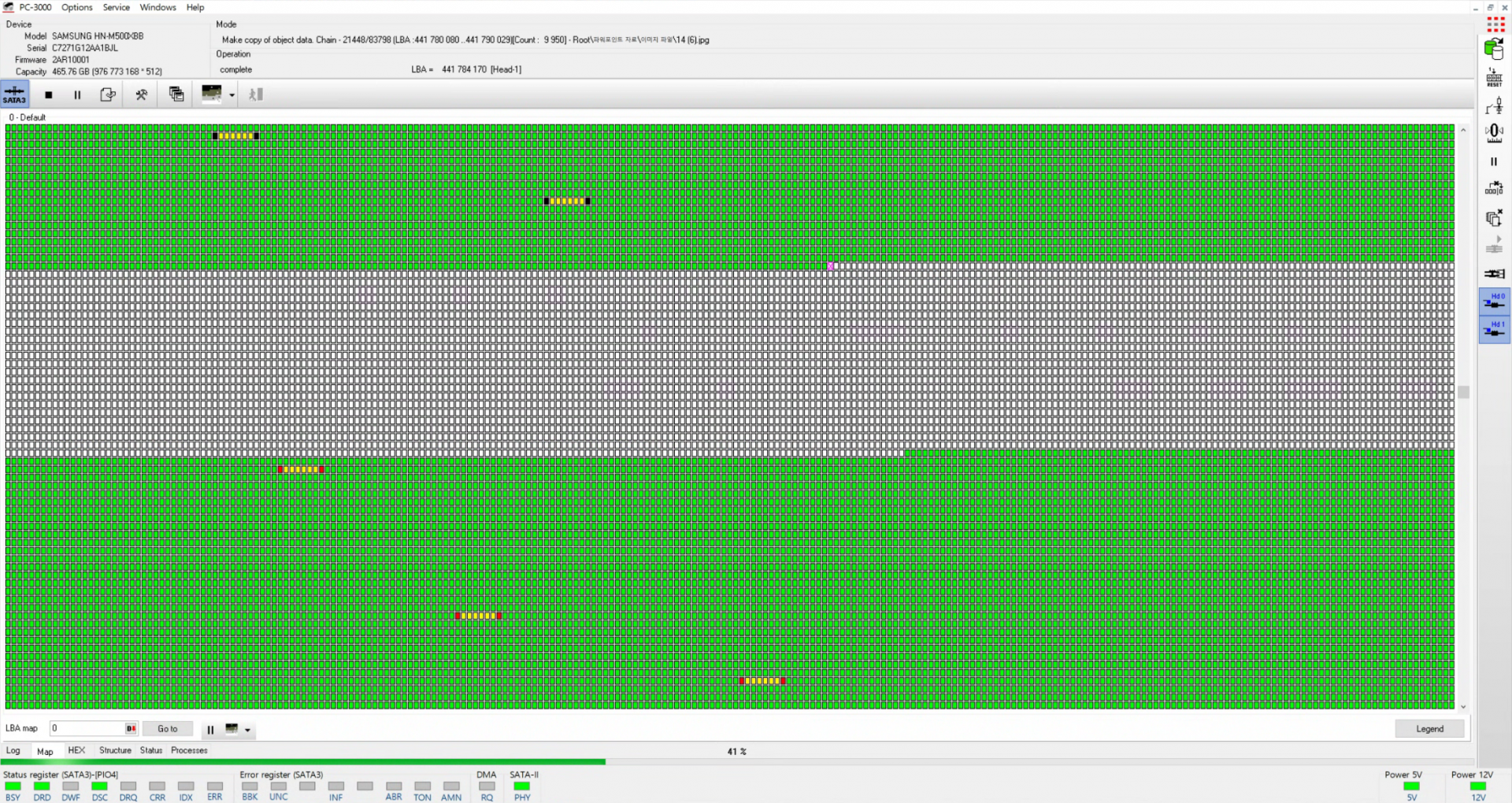 -데이터 영역중 배드섹터 약 2420만개 발생부분 제외 복구완료